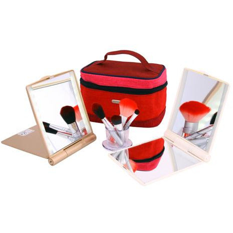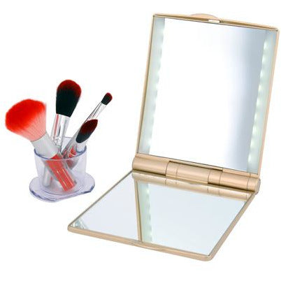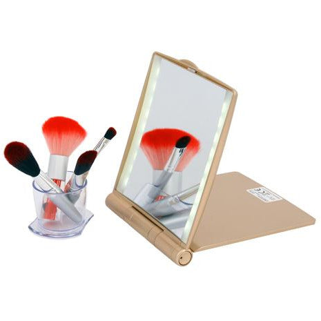 Make-up Spiegel met LED Verlichting – Goudkleurig – Staand – Draaibaar – Vergroting – Luxe Cosmeticaspiegel voor Badkamer of Kaptafel