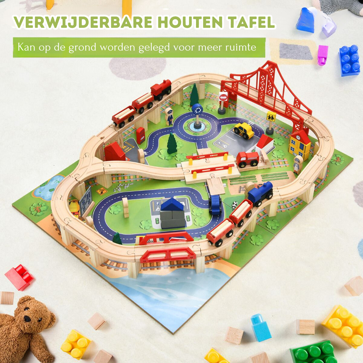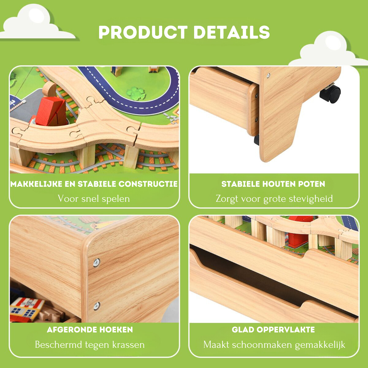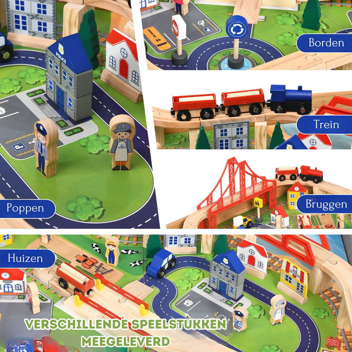 De treinset bevat 100-delige accessoires met spoorwegen, levendige personages, aantrekkelijke huizen, borden, voertuigen en bruggen.