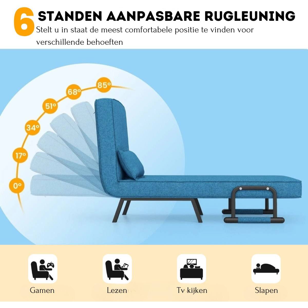Ja, deze 4-in-1 slaapstoel werkt als bank, loungezetel, ligstoel en logeerbed – ideaal voor elke ruimte.