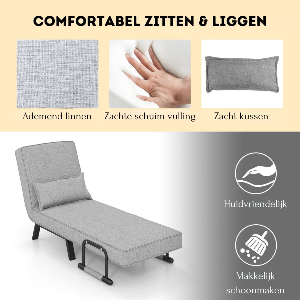 Geen compromis tussen stijl en functie – bestel nu de Trendmix Slaapstoel Lichtgrijs