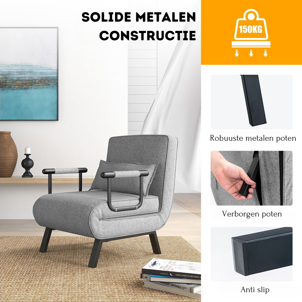 Stabiel metalen frame met antislip poten – Belastbaar tot 150 kg
