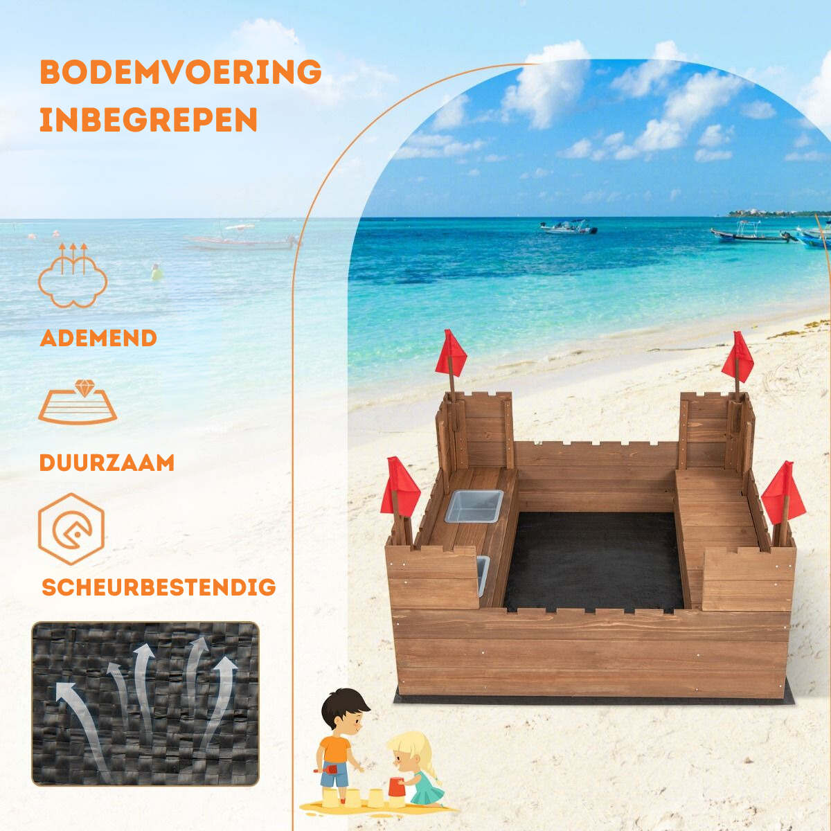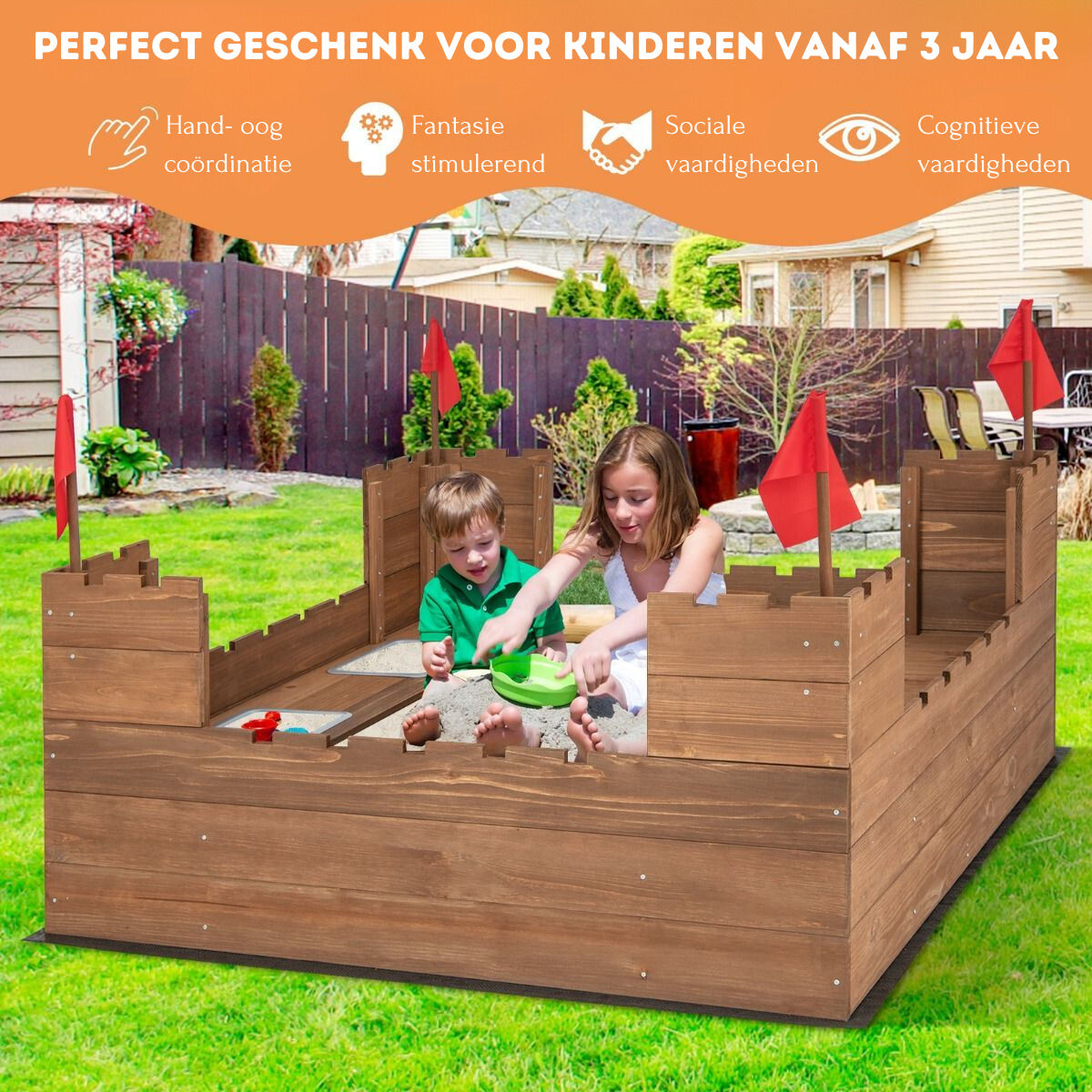 Wil je je kinderen een avontuurlijke en creatieve speelplek bieden in je eigen achtertuin? Ontdek dan onze Dennenhouten Kasteel Zandbak met Opbergvakken en Vlaggen! Met een ruime afmeting van 113 x 116 cm, zitbanken, opbergdozen en een bodemafdekking, is deze zandbak perfect voor 2 kinderen vanaf 3 jaar. Laat je kinderen genieten van urenlang speelplezier en ontwikkel hun praktische vaardigheden met dit unieke en veilige speeltoestel.