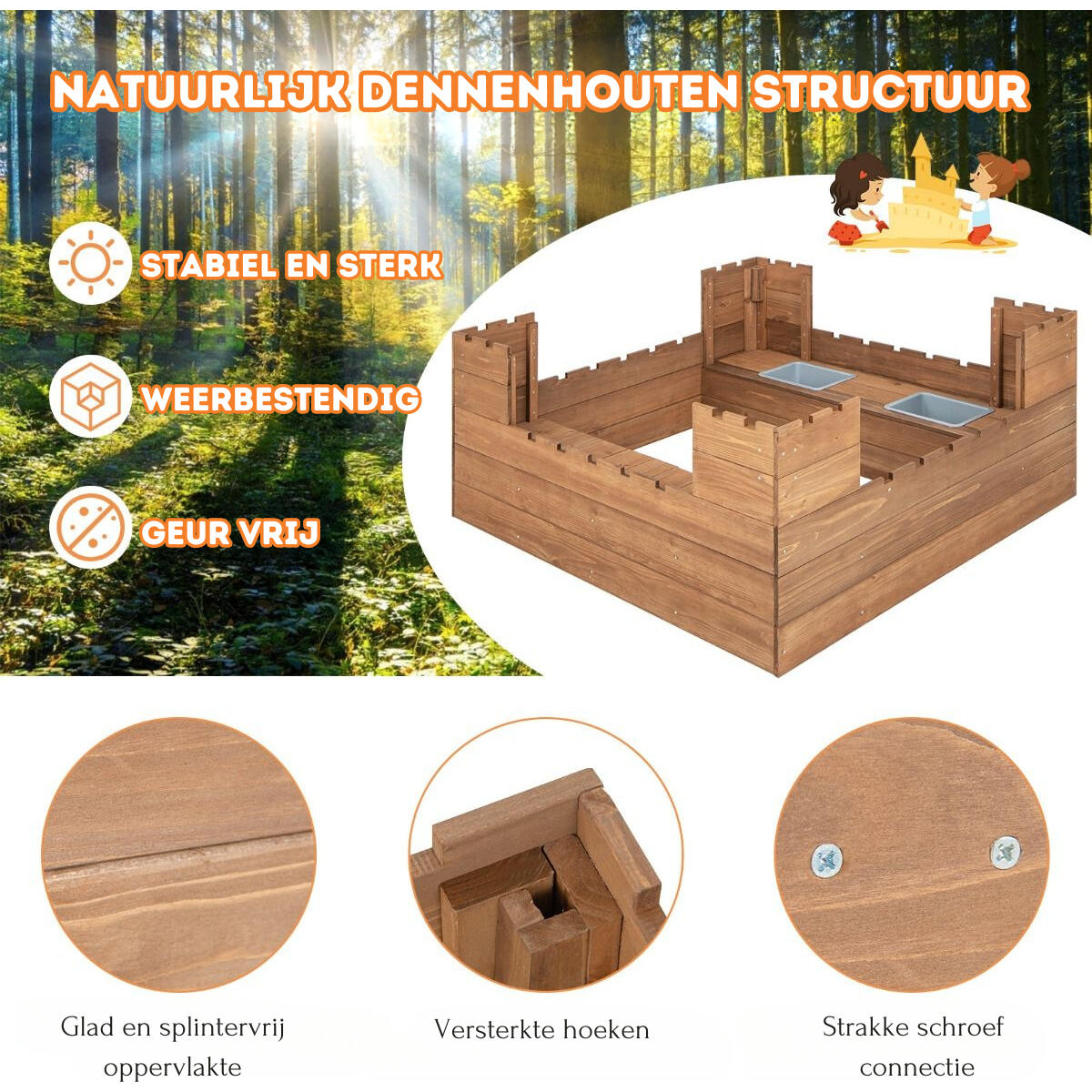 Dennenhouten Kasteel Zandbak voor 2 kinderen