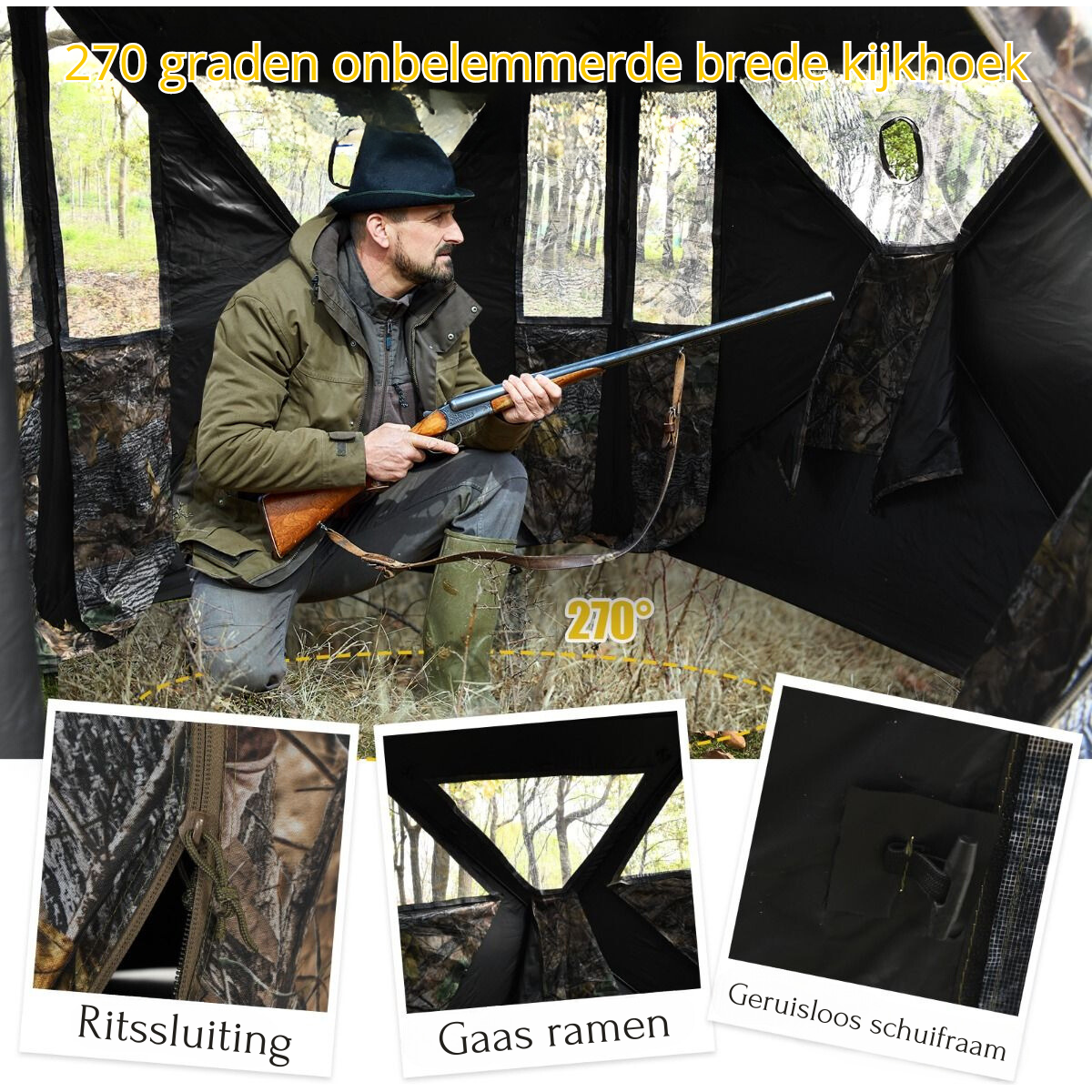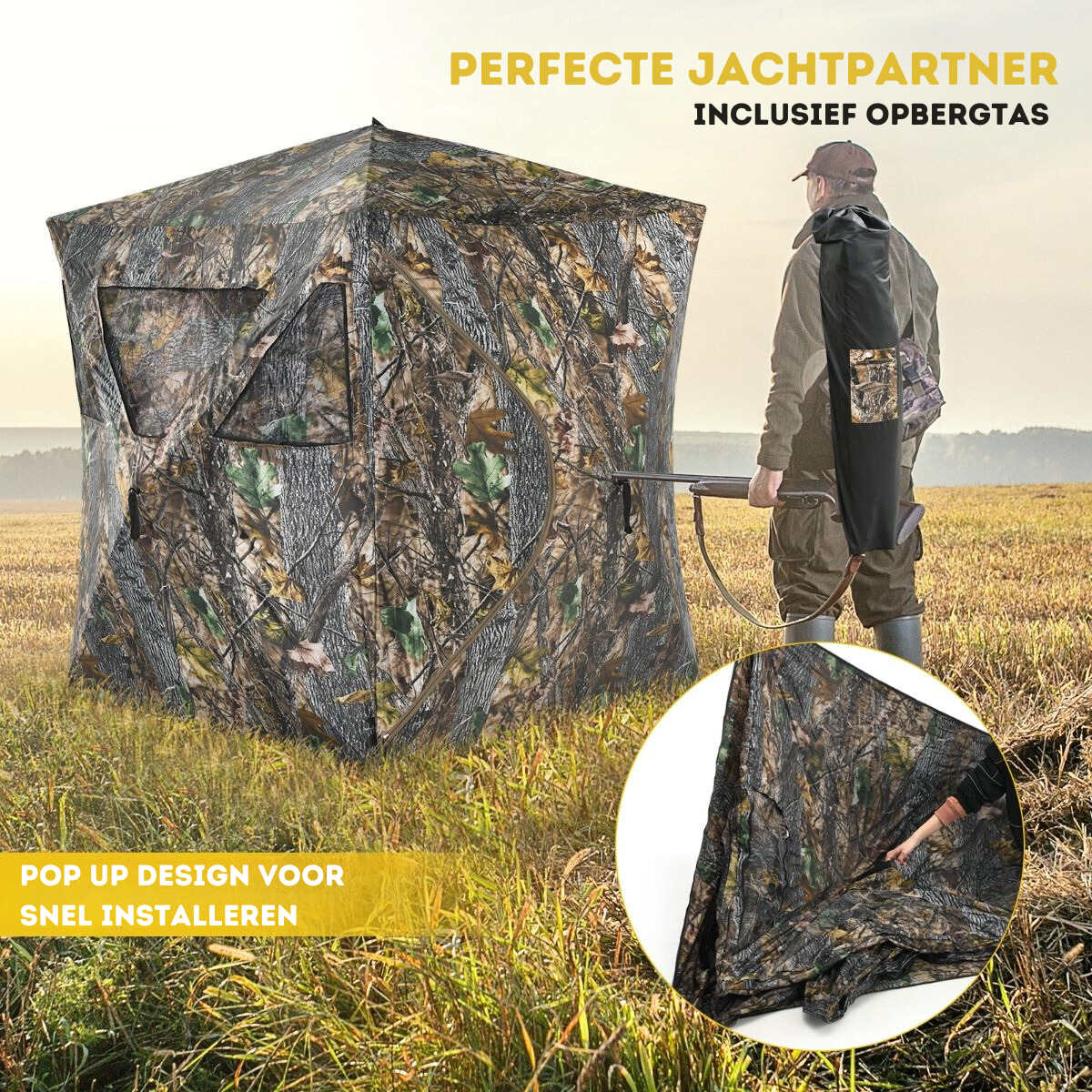 Draagbare jachttent: Met het praktische pop-up ontwerp zet je deze tent snel op en af. Ideaal voor jachtplezier.