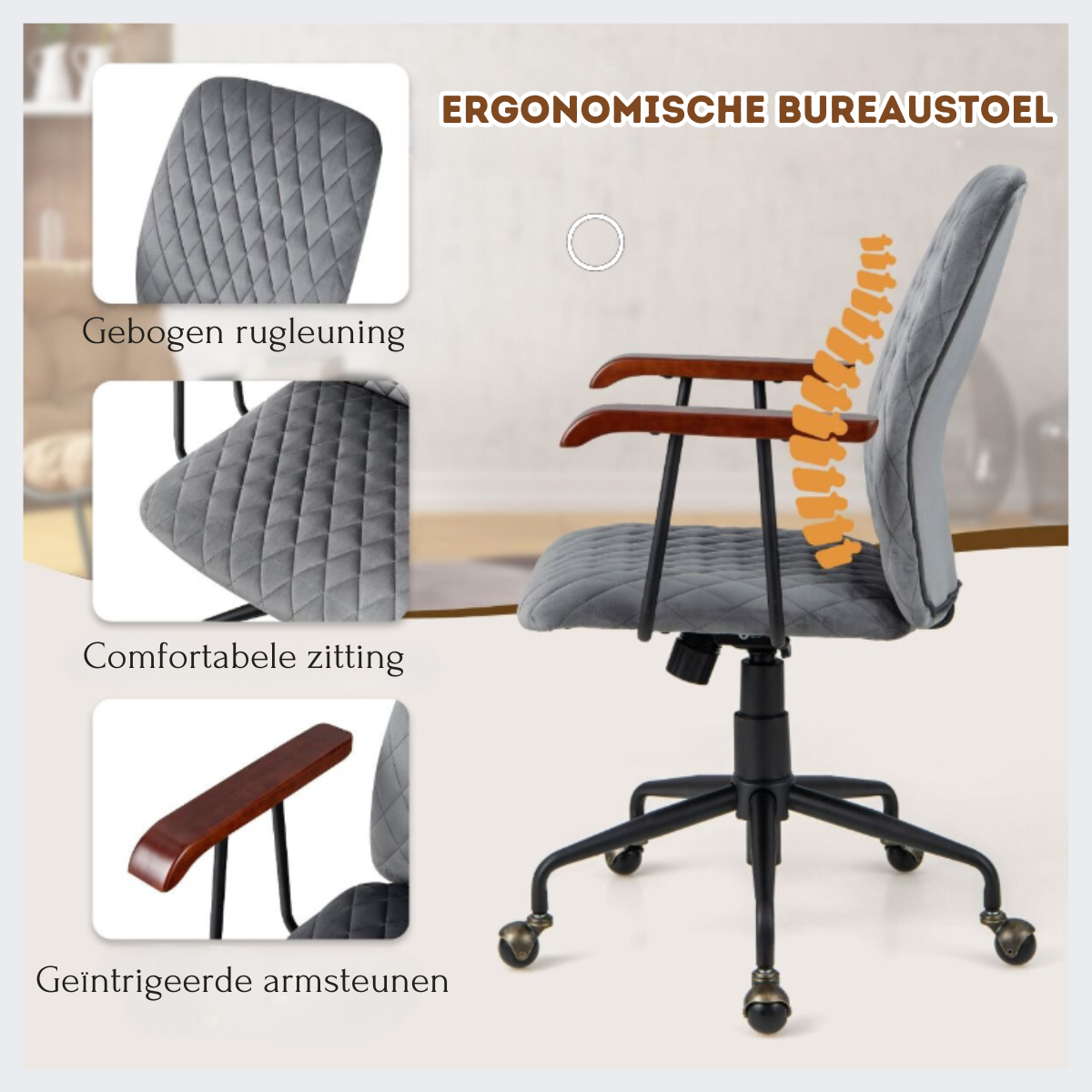 Comfort én stijl voor elk thuiskantoor – fluwelen bureaustoel met verstelbare rugleuning en vintage look