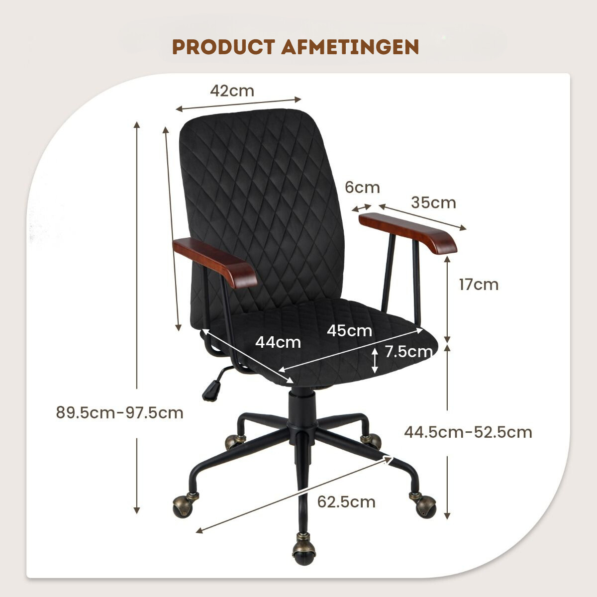 1. Hoe hoog is de Fluwelen Vintage Bureaustoel met verstelbare rugleuning?