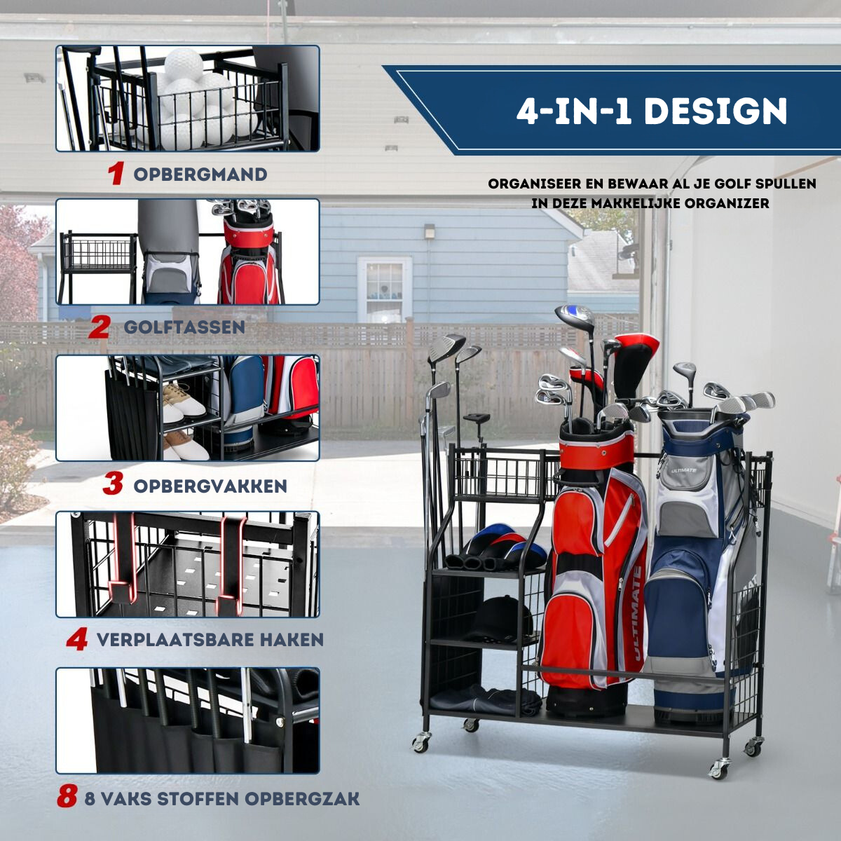 Garage organizer voor efficiënte opslag van golfuitrusting