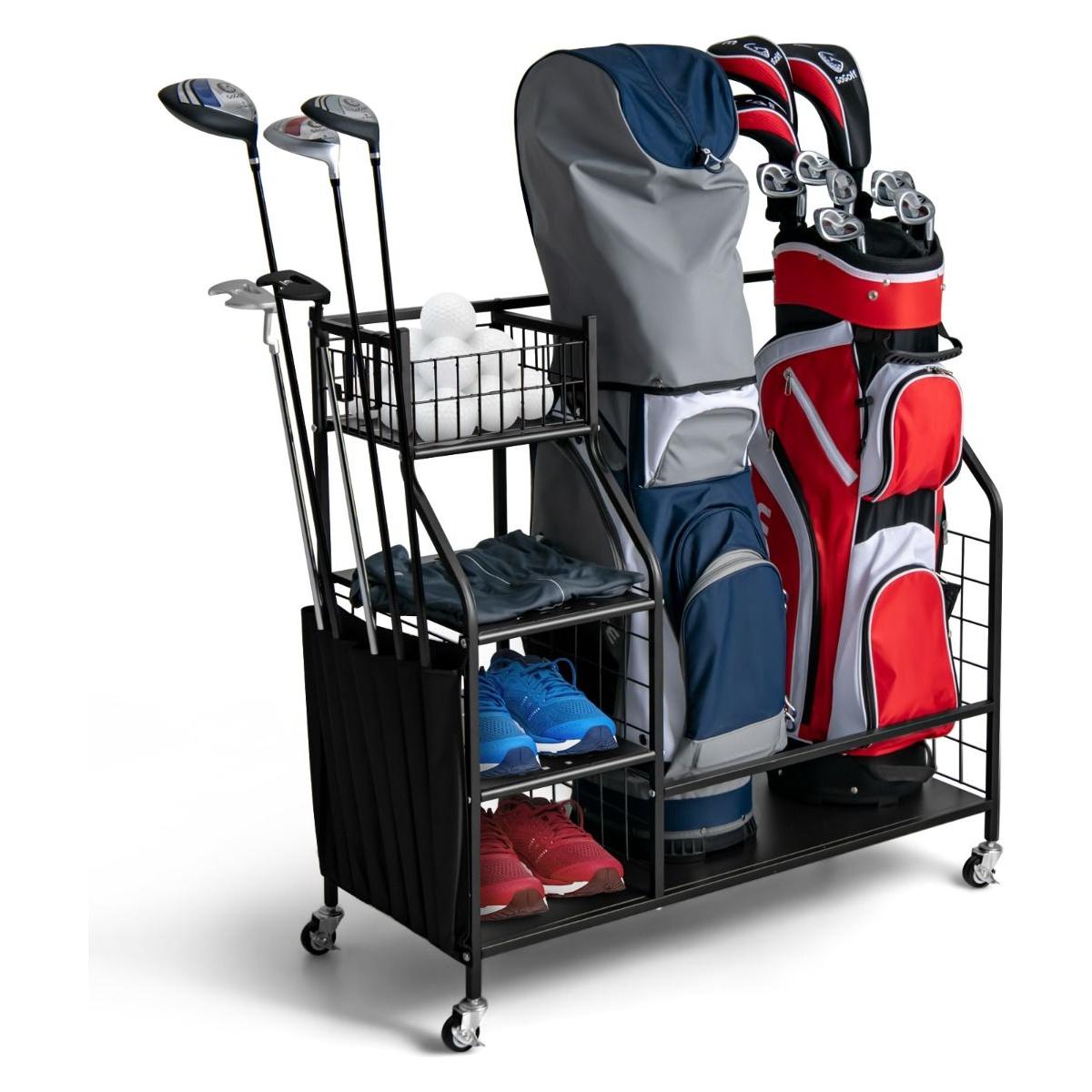 Ja, deze golf opslag organizer heeft een ruim gebied voor twee golftassen, een mandje, 3 planken en 4 beweegbare haken, waardoor het perfect is voor het opbergen van 2 standaard golftassen en veel golfaccessoires.