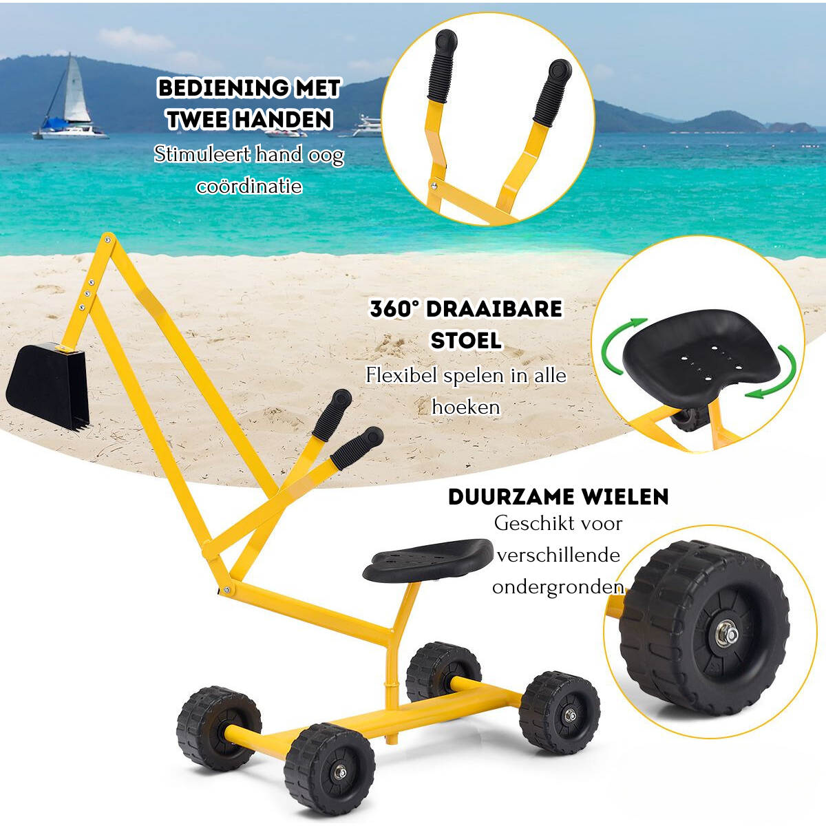 - Eindeloos graven en bewegen dankzij de 4 stevige wielen
