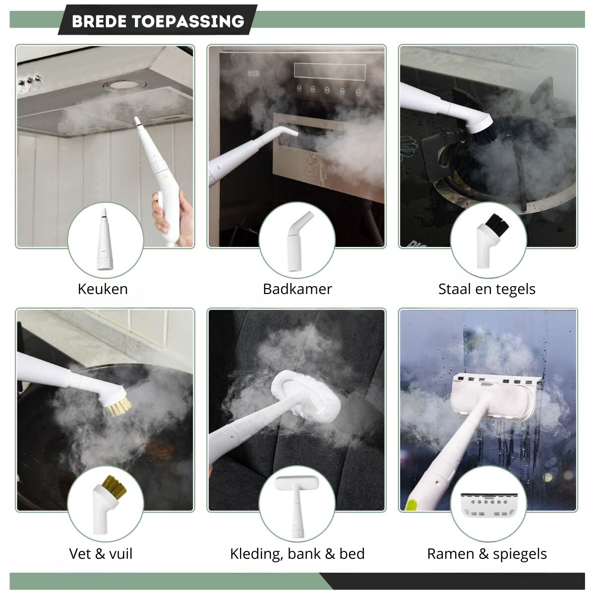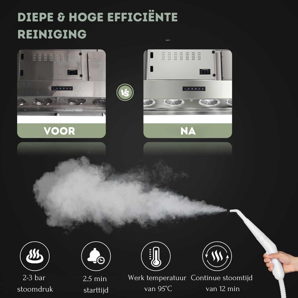 Krachtige stoom (1000W) – Verwijdert vet, kalk, bacteriën & stof in seconden
