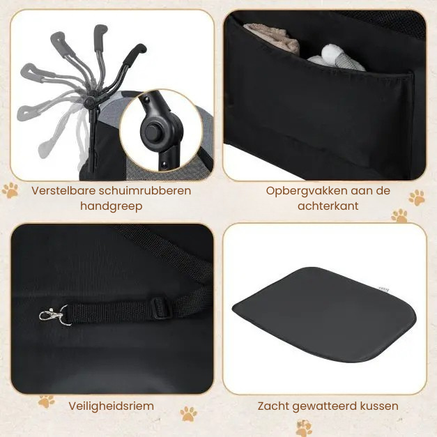 XXL Hondenbuggy met Opbergvakken: Met ruime opbergvakken houd je benodigdheden binnen handbereik tijdens uitstapjes.