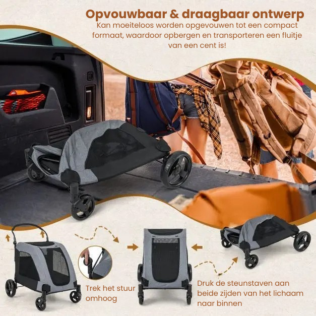 3. Kan de Opvouwbare XXL Hondenbuggy gemakkelijk worden opgevouwen voor opslag?
