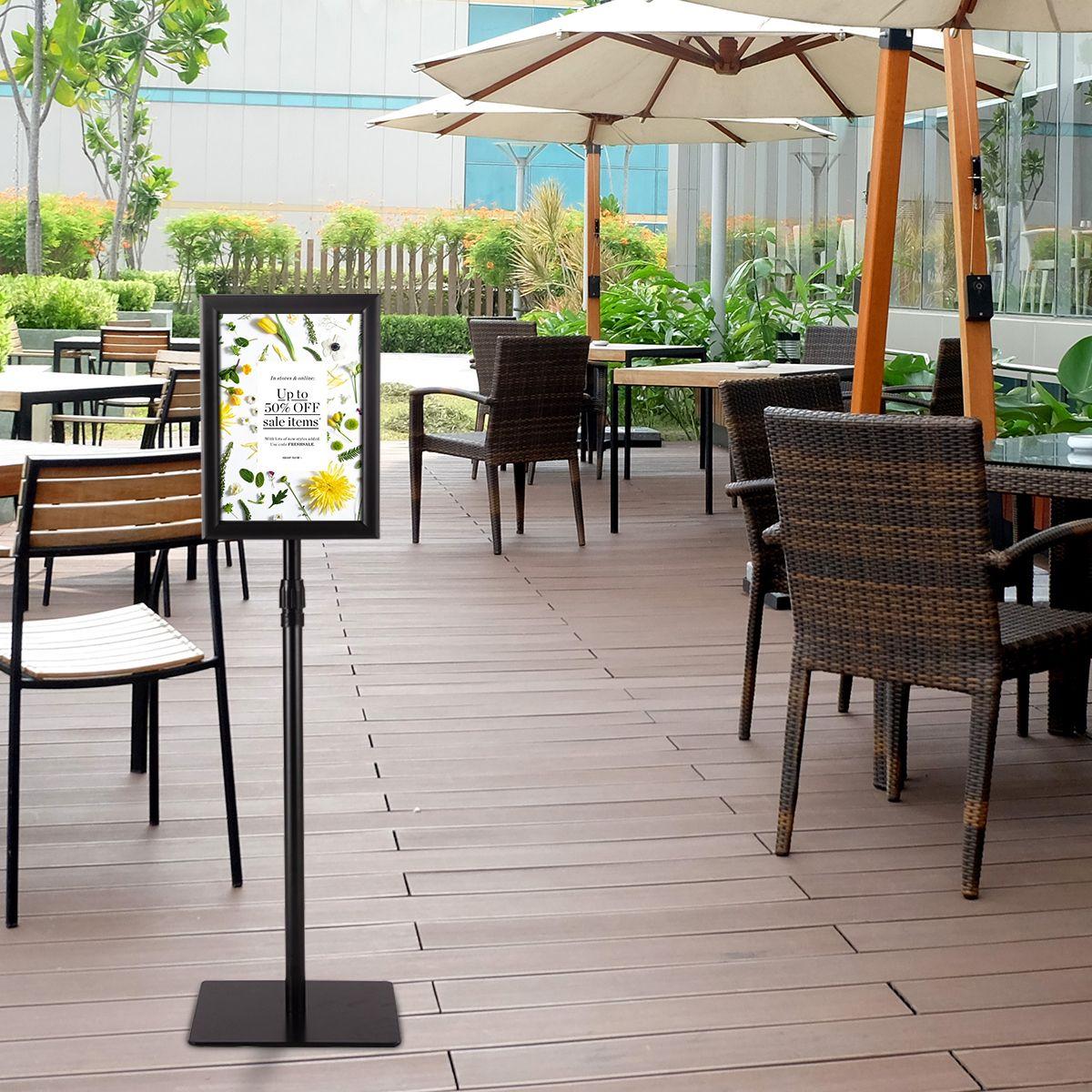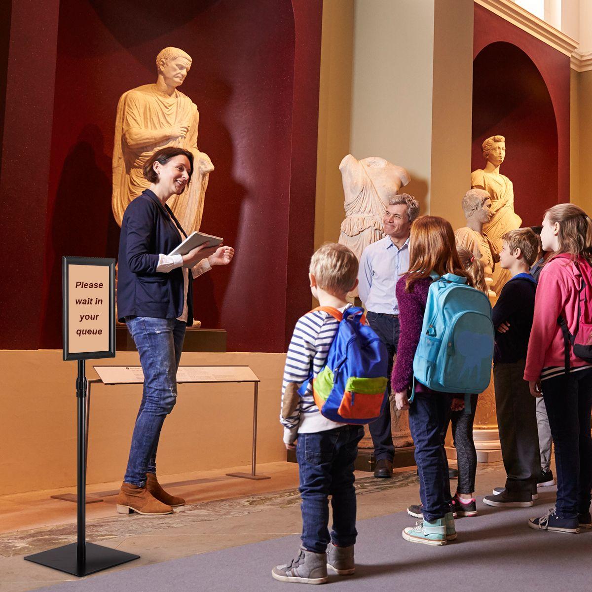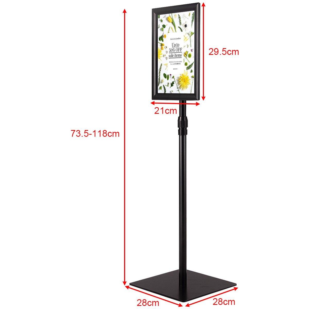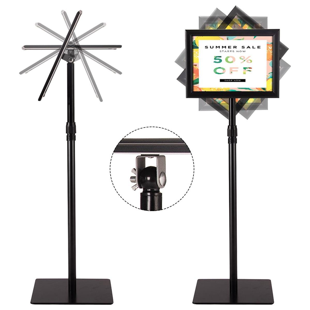 Op zoek naar een stabiele en duurzame informatiestandaard A4? Met deze verstelbare presentatiestandaard van Trendmix toon je jouw poster, flyer of menukaart altijd op de perfecte hoogte én in de juiste kijkhoek. Het aluminium frame en de antislip basis zorgen voor stabiliteit, terwijl het 360° draaibare A4-frame zorgt voor optimale leesbaarheid – perfect voor horeca, winkels, beurzen, bioscopen of kantoren.