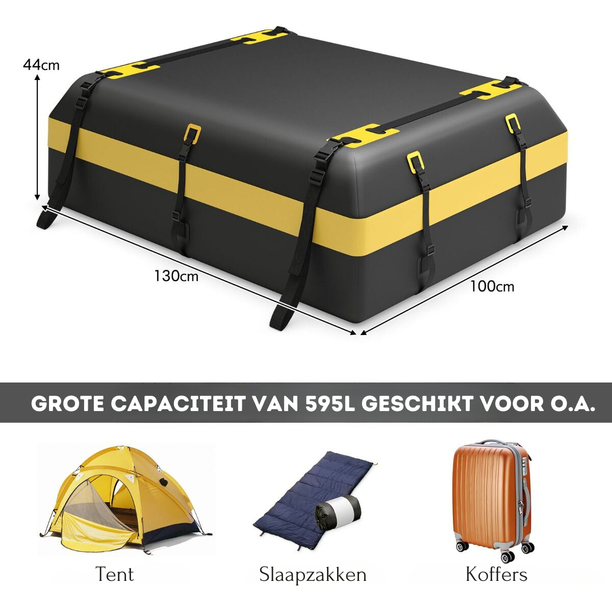 De Autodaktas heeft een enorme opslagcapaciteit van 595 liter, genoeg ruimte om 4 slaapzakken, 4 middelgrote koffers en 2 tenten op te bergen. Dit maakt het perfect voor familiereizen en zorgt ervoor dat er meer ruimte overblijft in de auto voor uw kinderen en huisdieren om te rusten.