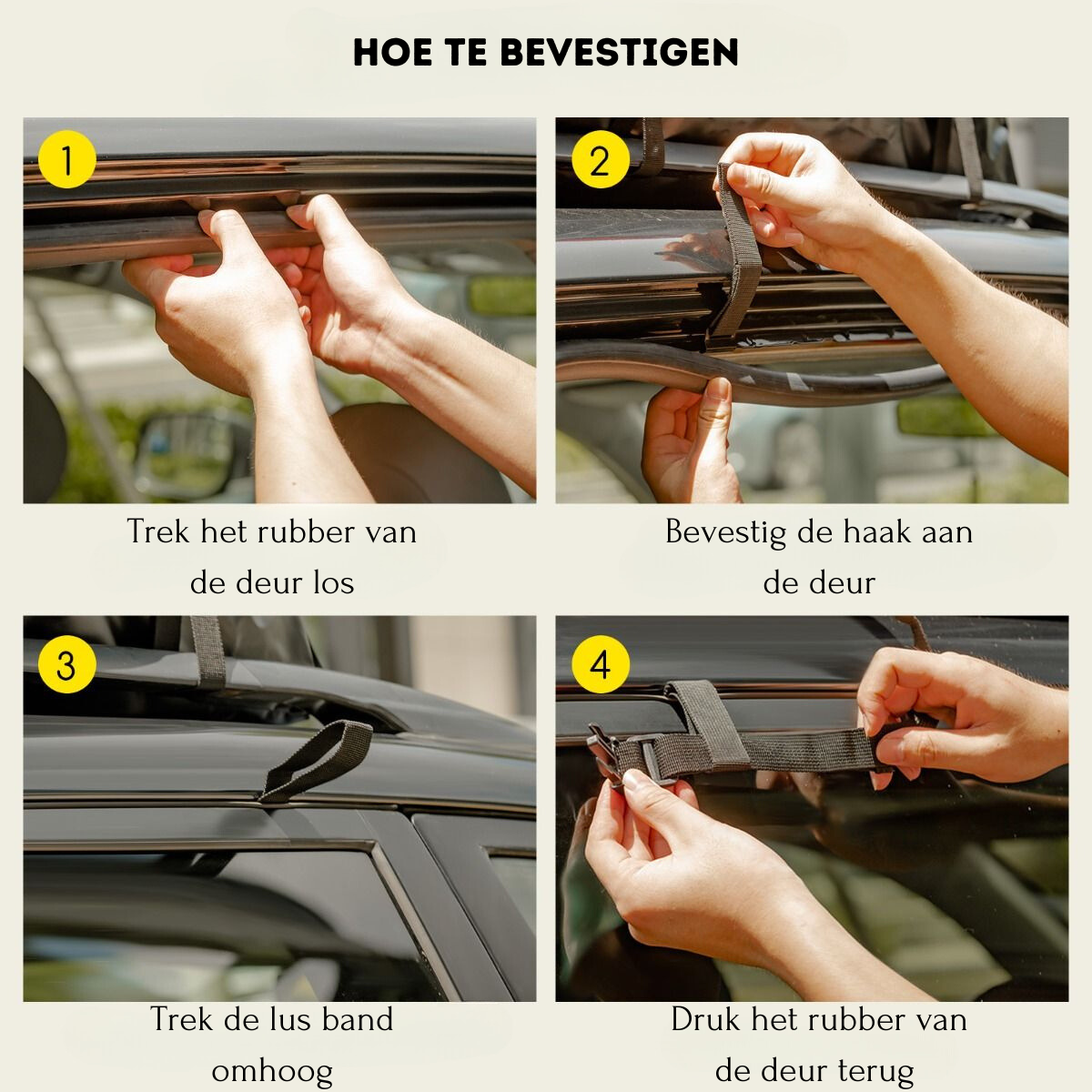 Autodaktas voor extra ruimte in de auto en meer comfort! Laat de kinderen en huisdieren rusten terwijl al uw bagage veilig op het dak zit.