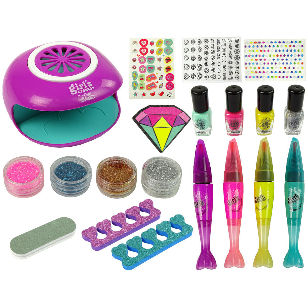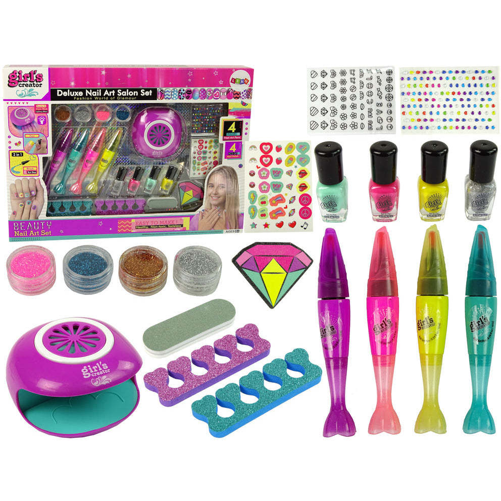 Deluxe nail art salon set nail art pennen, nagellak, nageldroger, steentjes en accessoires