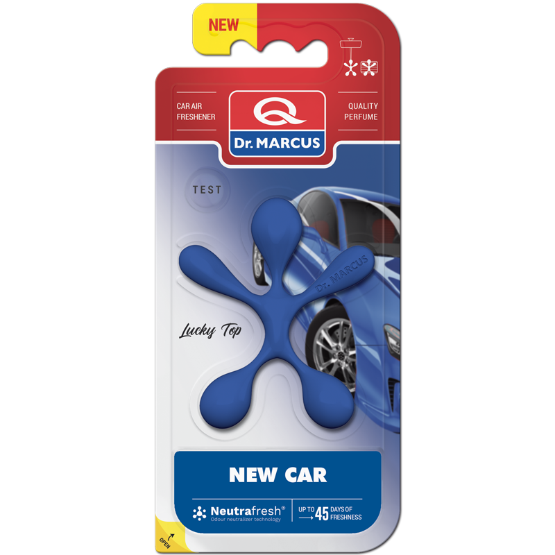 Met de Lucky Top New Car luchtverfrisser van Dr. Marcus geniet je tot wel 45 dagen lang van subtiele en geruststellende aroma's tijdens elke autorit. Dankzij de neutrafresh technologie verspreidt deze luchtverfrisser continu een delicate geurervaring, waardoor elke reis aangenamer wordt.