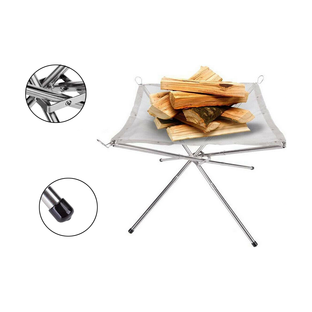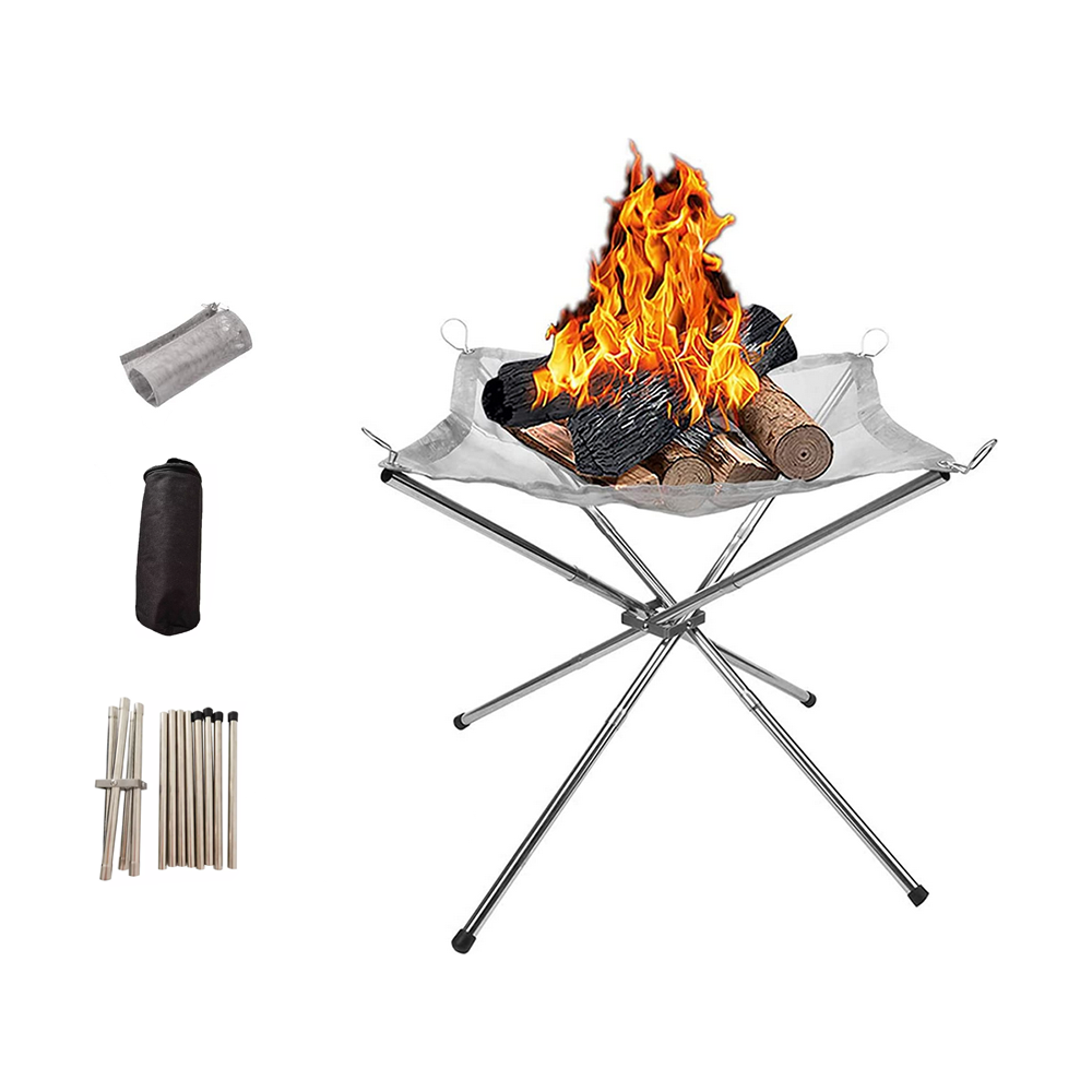Ben je op zoek naar de perfecte oplossing voor een knetterend kampvuur op elke locatie? Dan is deze draagbare en opvouwbare kampvuurstandaard precies wat je nodig hebt! Gemaakt van hoogwaardig roestvrij staal, met een stevige constructie en hittebestendig gaas, is deze vuurschaal ideaal voor elke kampeer- en buitenervaring. Neem hem mee in de handige reistas en geniet van gezellige avonden rond het vuur.