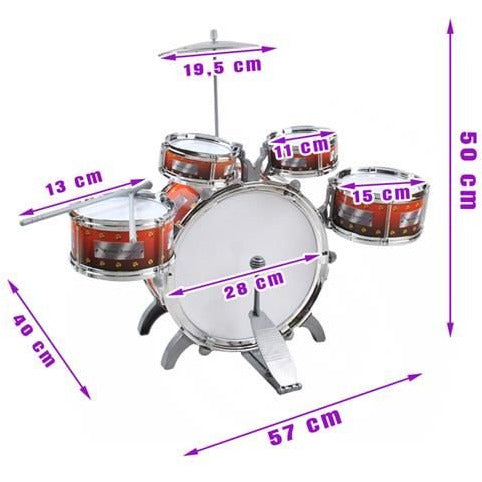 Drumstel voor kinderen met 5 trommels en krukje 57 x 40 x 50 cm