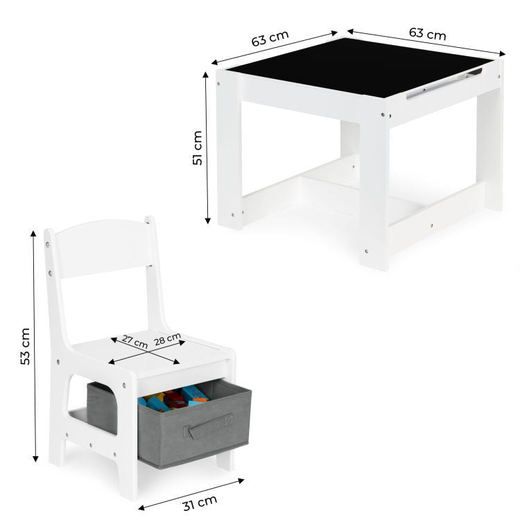 Dubbelzijdige kindertafel met stoeltjes 63x63x51cm wit