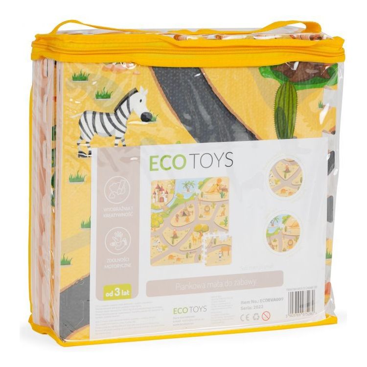 Ecotoys 9 delige puzzelspeelmat foam safari voor baby en peuter - Vloerpuzzel inclusief opbergtas - 93,5x93,5cm
