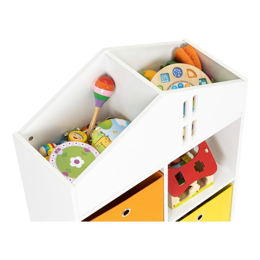 Ecotoys boekenkast met 2 mandjes - speelgoedkast 6 vakken - kinderkast wit / oranje / geel - 65.2 x 27 x 90.5 cm