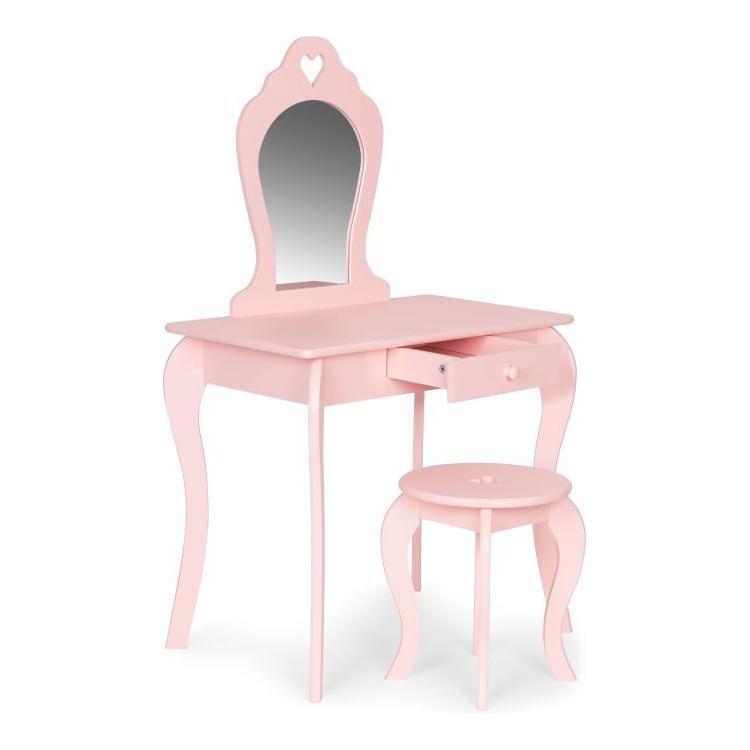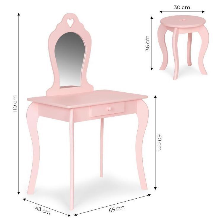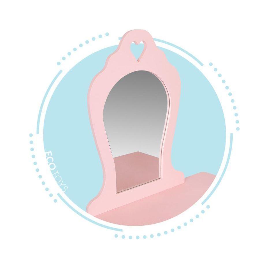 Ecotoys houten kinder kaptafel met spiegel en krukje 43x65x110 cm Roze