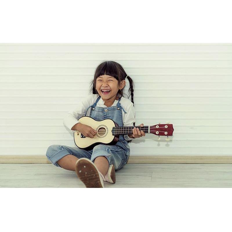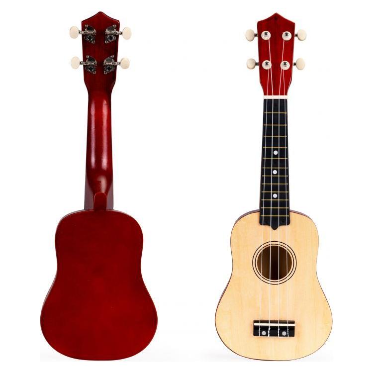 Ecotoys houten kinder ukelele/ gitaar met 4 snaren en 12 frets 17,5 x 5 x 52,5 cm beige