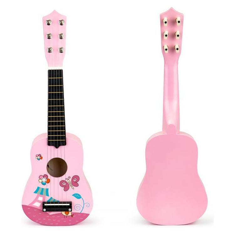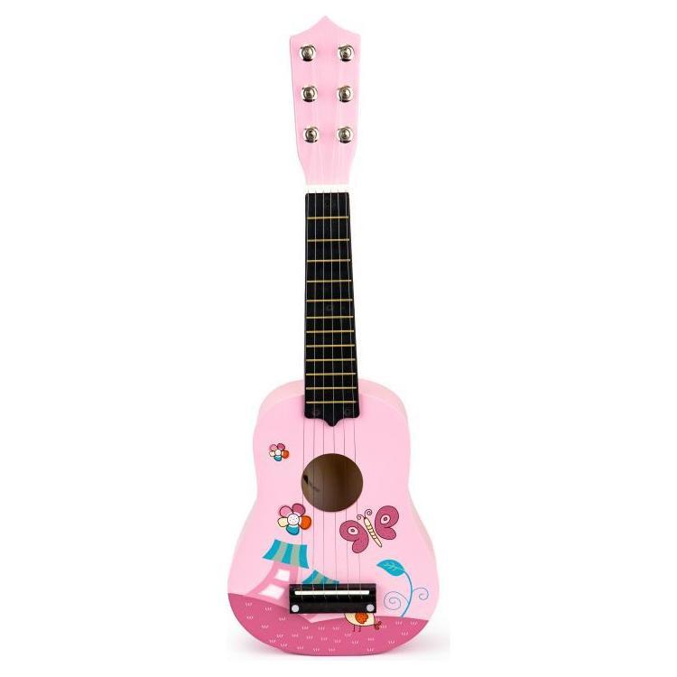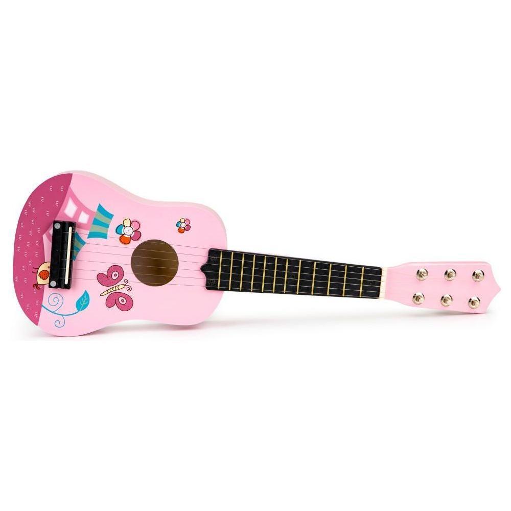 Ecotoys houten kindergitaar met 6 snaren en 12 frets 17,5 x 5 x 52,5 cm roze