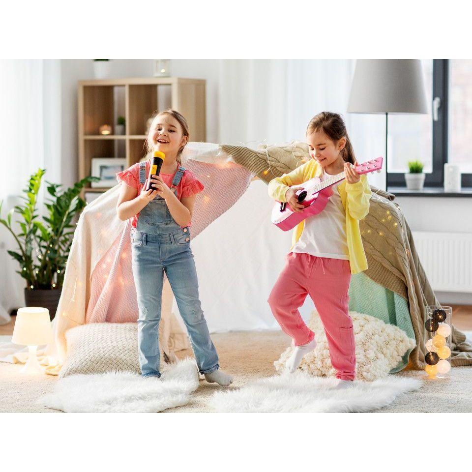 • Duurzaamheid en Veiligheid: De gitaar is stevig gebouwd met hoogwaardige materialen. Het is ontworpen met de veiligheid van kinderen in gedachten en voldoet aan strikte normen.