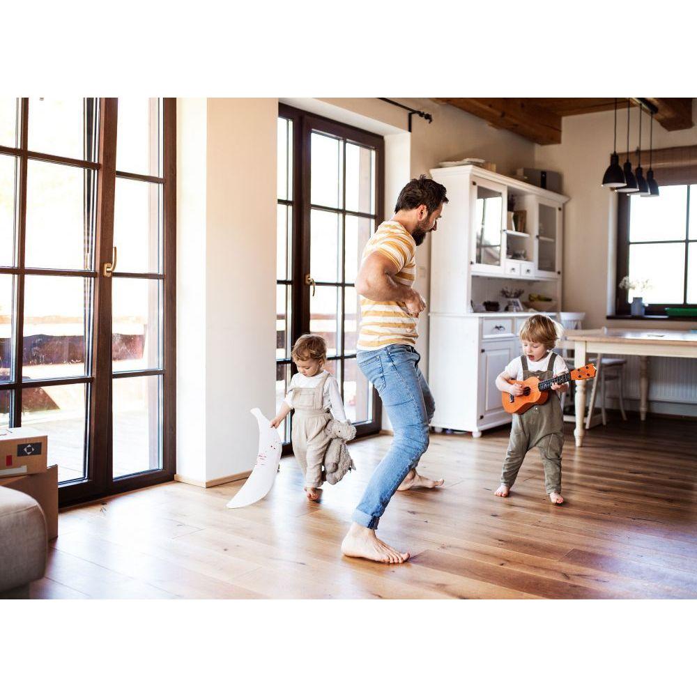 Ecotoys houten kinder ukelele/ gitaar met 4 snaren en 12 frets 17,5 x 5 x 52,5 cm bruin