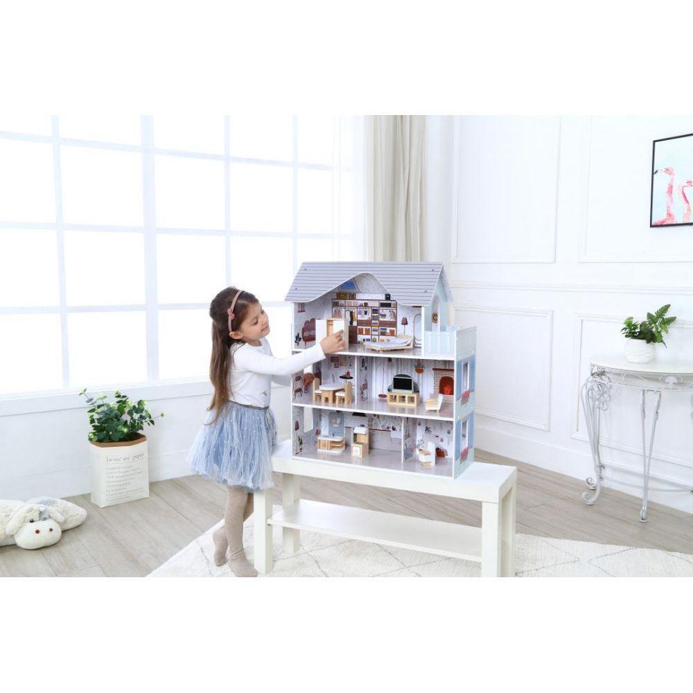 - Met 3 onafhankelijke niveaus en 6 verschillende kamers biedt het poppenhuis genoeg ruimte.