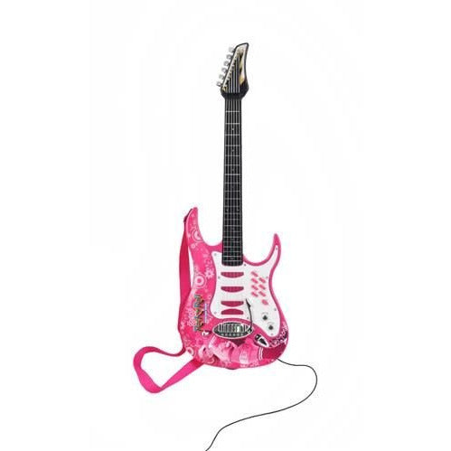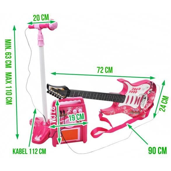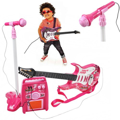 Elektrische gitaar met microfoon en versterker voor kinderen roze