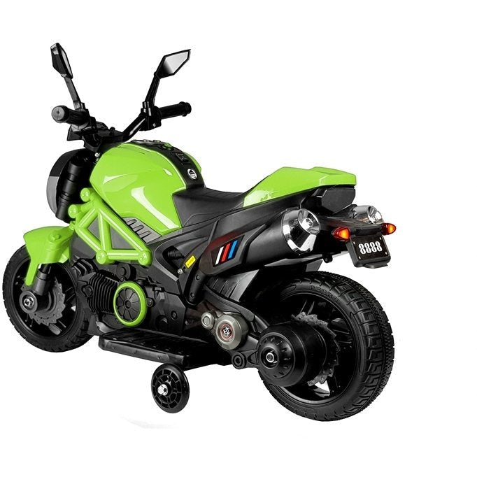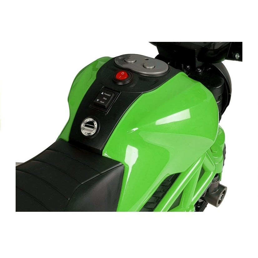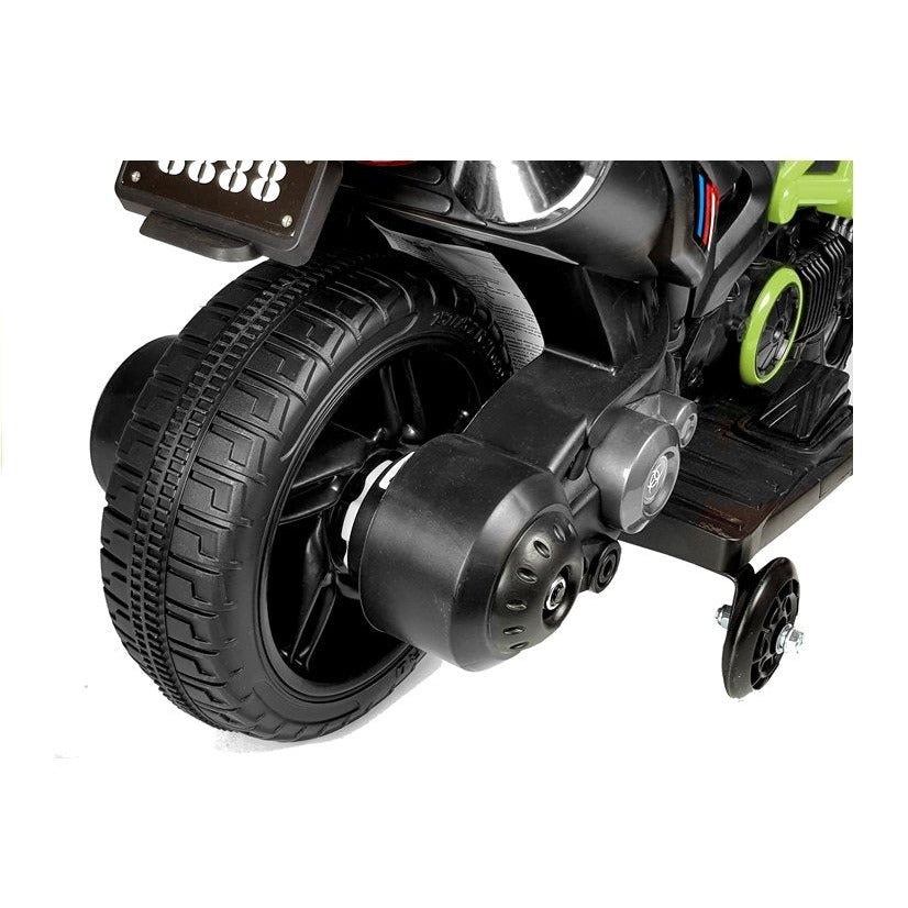 De kindermotor is uitgerust met achterwielaandrijving, bediend door een 35W motor die wordt gevoed door een 6V batterij. Op de tank bevindt zich een schakelaar waarmee de motorfiets kan worden ingeschakeld, evenals een schakelaar voor het selecteren van de vooruit, achteruit en neutraal stand. Aan de voorkant van het voertuig bevindt zich een koplamp met een LED-lamp die in verschillende kleuren kan schijnen.