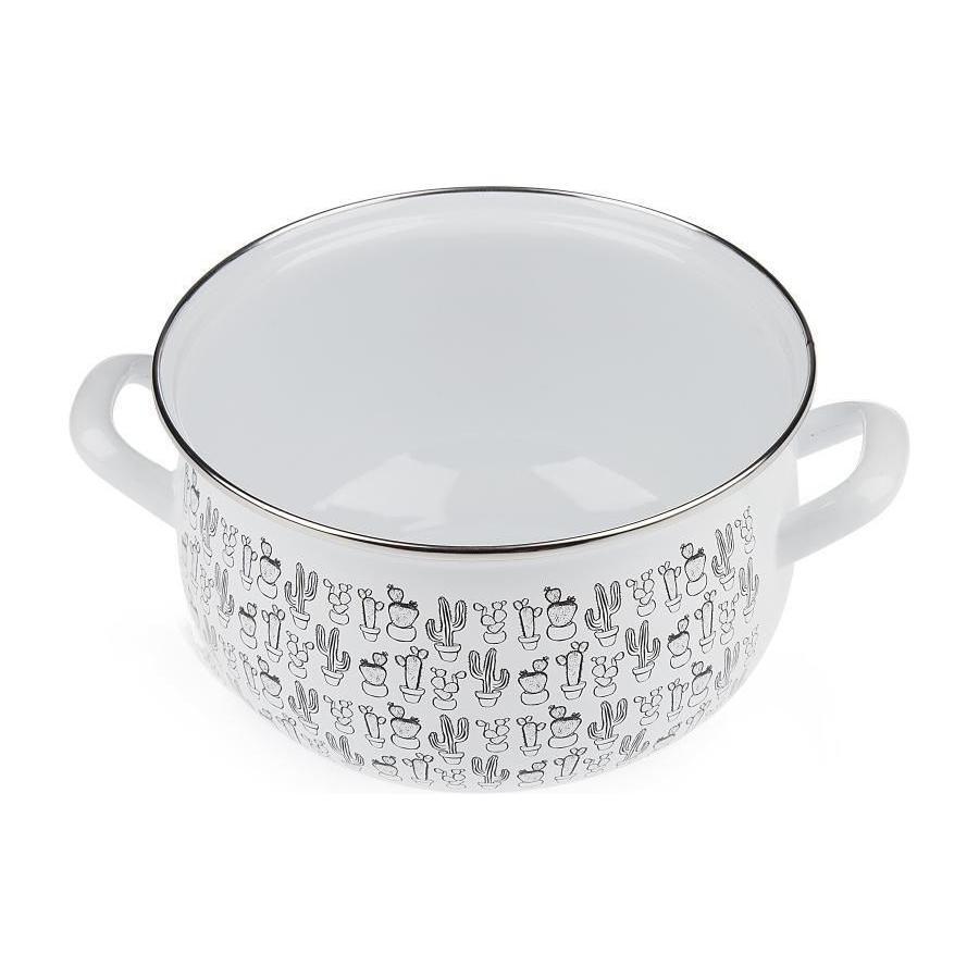 Emalia "Cactus" kookpan met deksel 18 cm 3L emaille wit