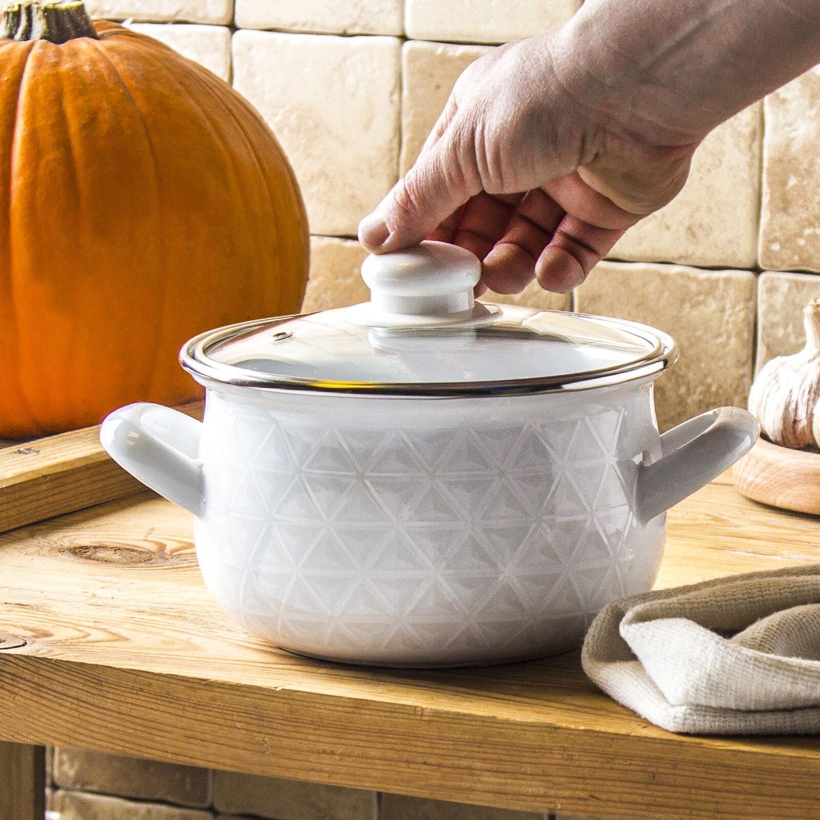 Type: Retro geëmailleerde kookpan met glazen deksel