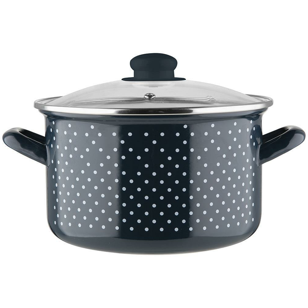 Breng stijl en authenticiteit naar je keuken met de Emalia Retro Dark Blue kookpan. Deze klassieke pan is gemaakt van geëmailleerd koolstofstaal en combineert een duurzame kwaliteit met een gezonde kookervaring, omdat de emaille laag voorkomt dat er schadelijke stoffen in je eten terechtkomen. Perfect voor gezinnen of kookliefhebbers: met een inhoud van 5,3 liter en een diameter van 22 cm bereid je moeiteloos soepen, stoofgerechten en pasta’s. Het donkerblauwe retro design met witte stippen maakt de pan een blikvanger in elke keuken.