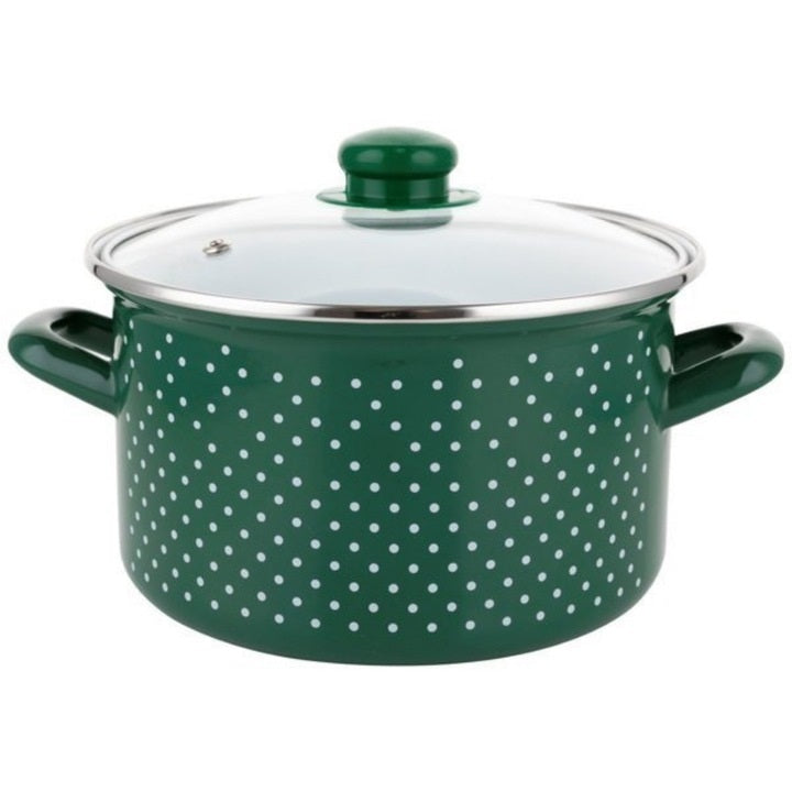 Emalia Retro Green klassieke geëmailleerde kookpan met glazen deksel 22 cm 5.3L groen/ wit