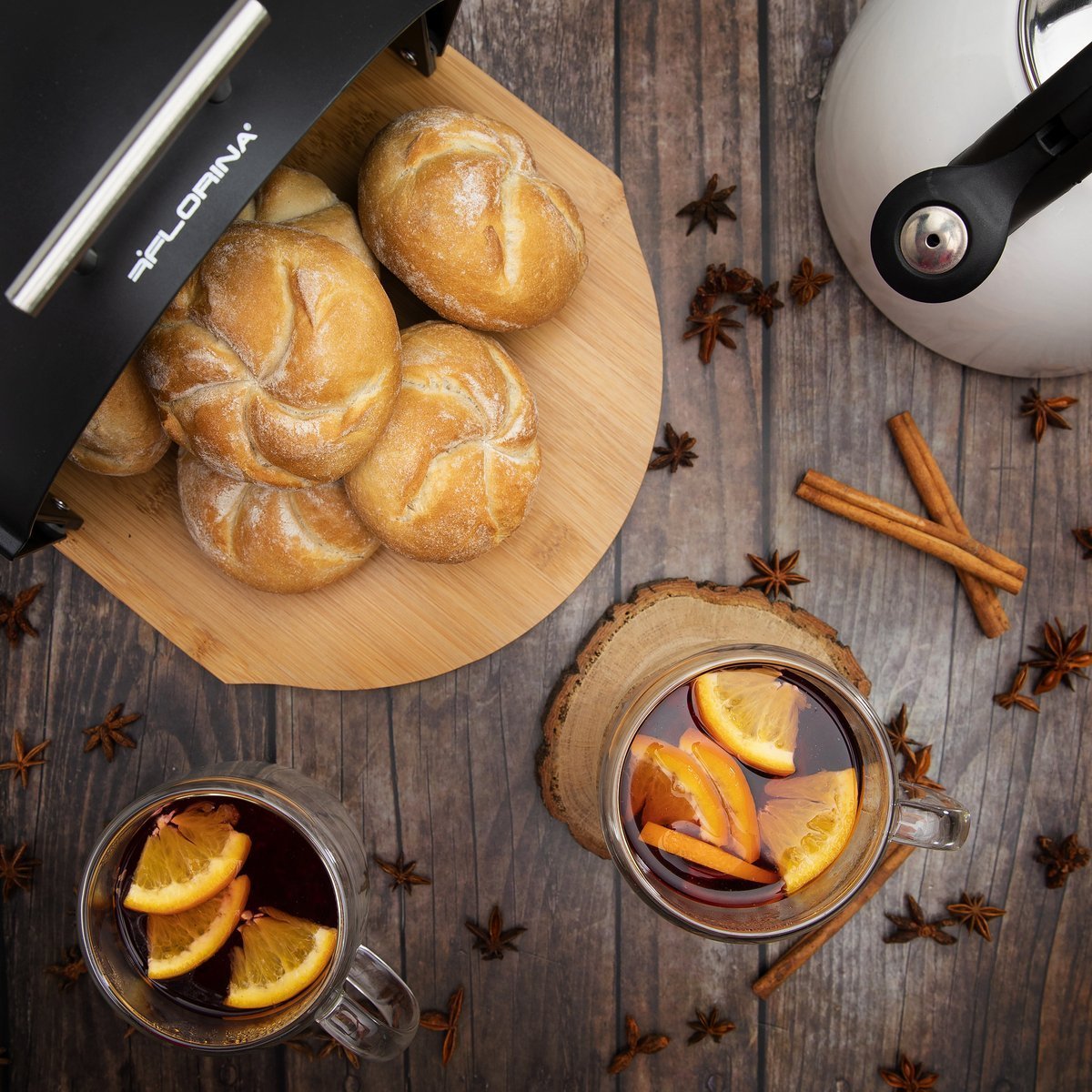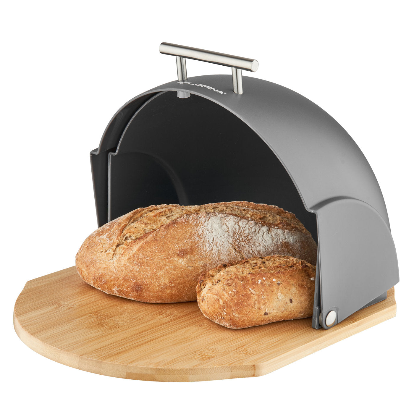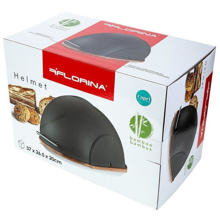 Florina Helmet moderne zwarte broodtrommel met rolklep compact formaat 37 x 26.5 x 20 cm polystyreen / Bamboe