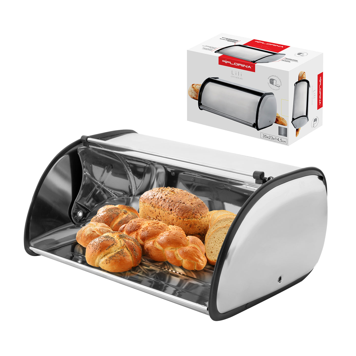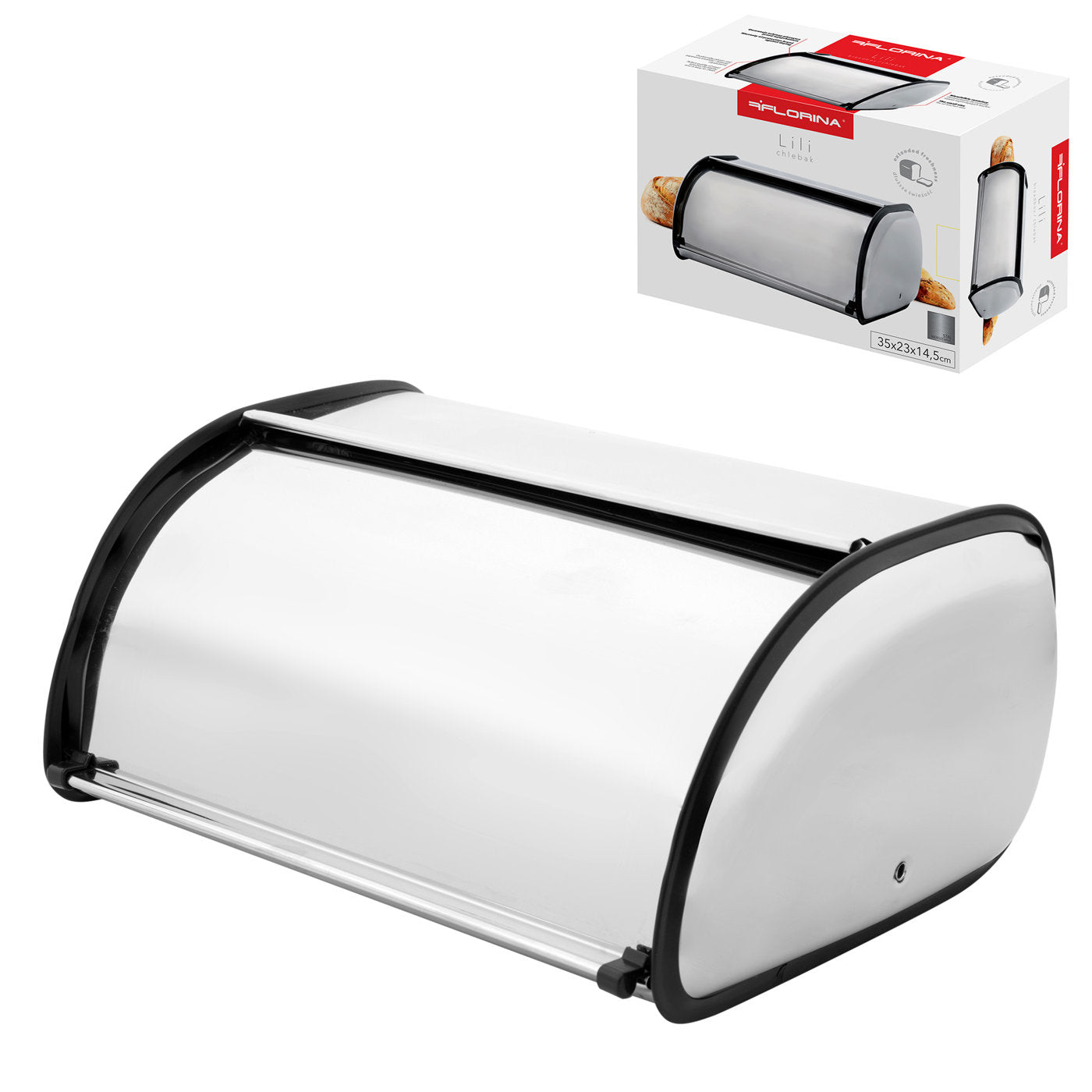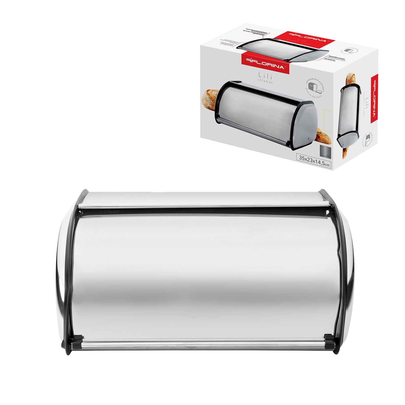 Florina Lili zilveren broodtrommel met rolklep klein formaat 35 x 23 x 14.5 cm RVS
