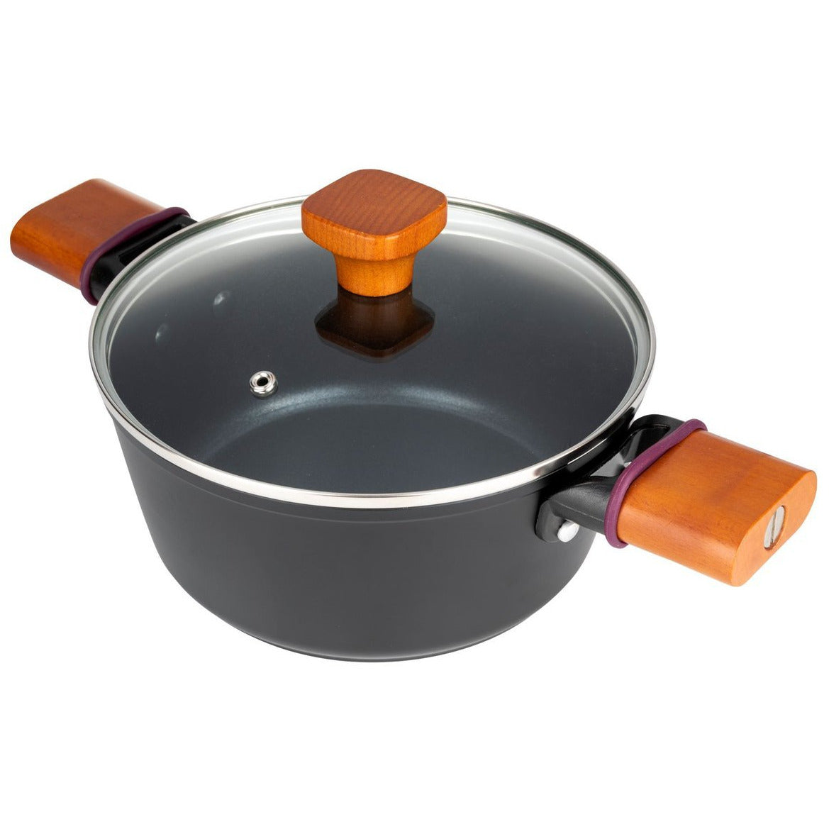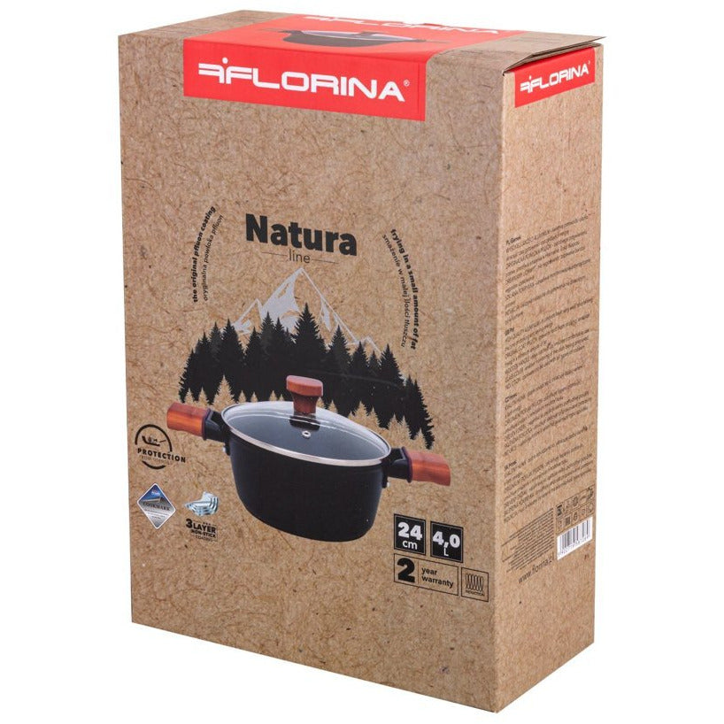 Florina Natura Line kookpan met 3-laags keramische coating en glazen deksel 24cm 3,9L mat zwart / bruin