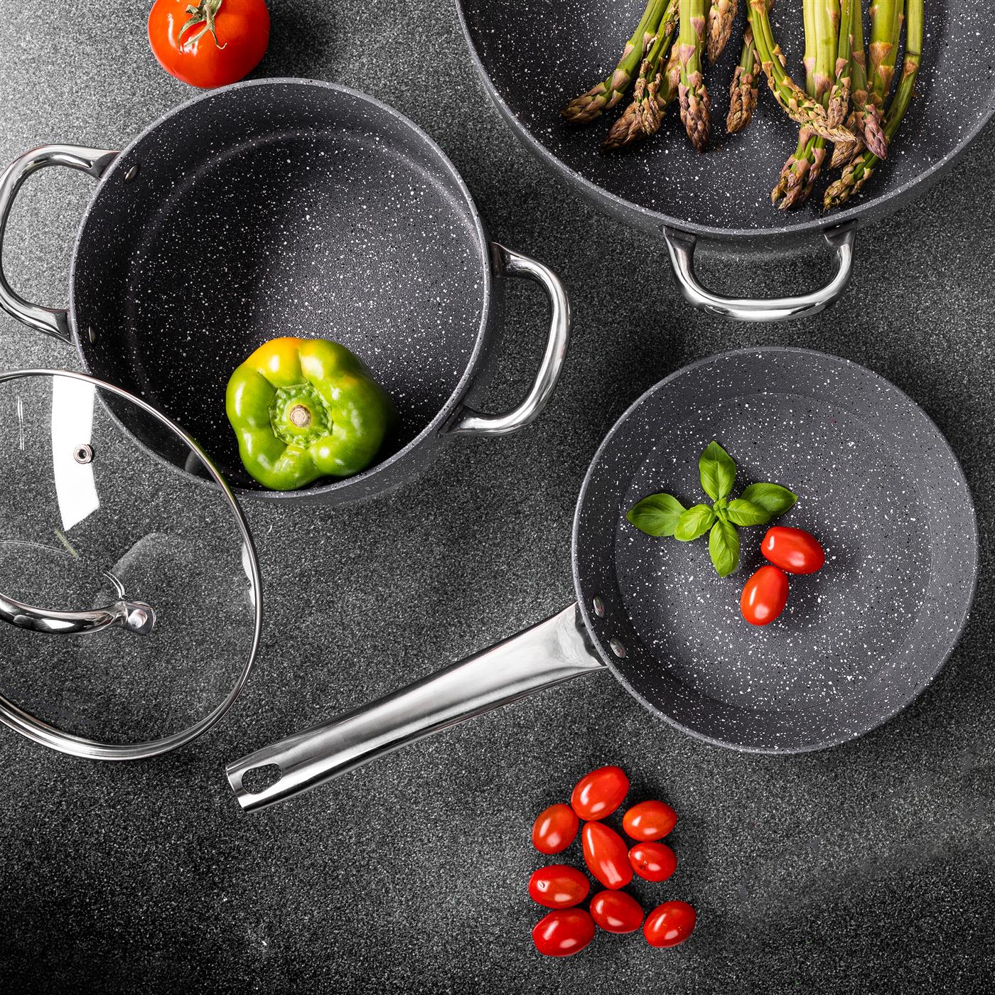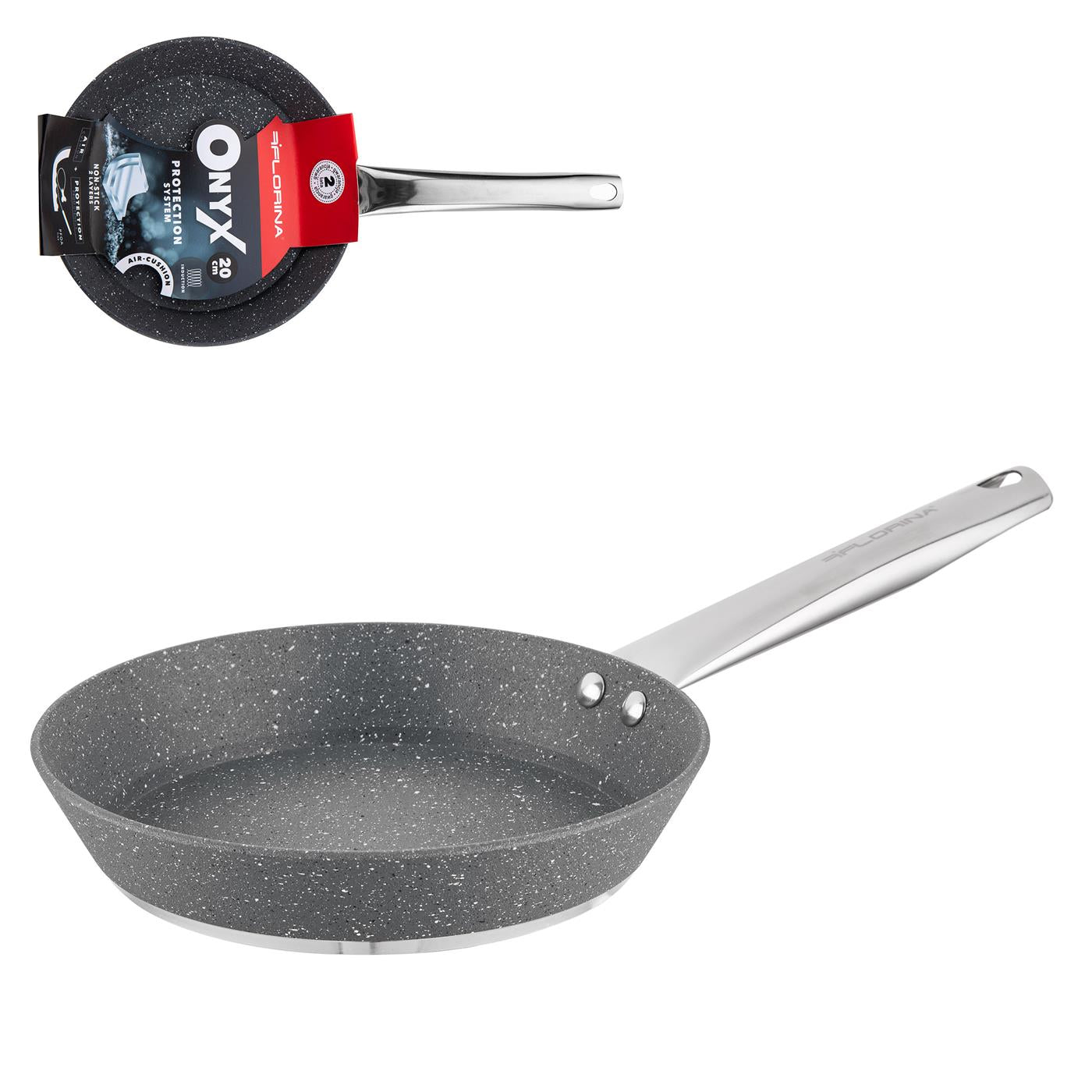 Florina onyx koekenpan met 2-laags keramische coating 20 cm stone look grijs