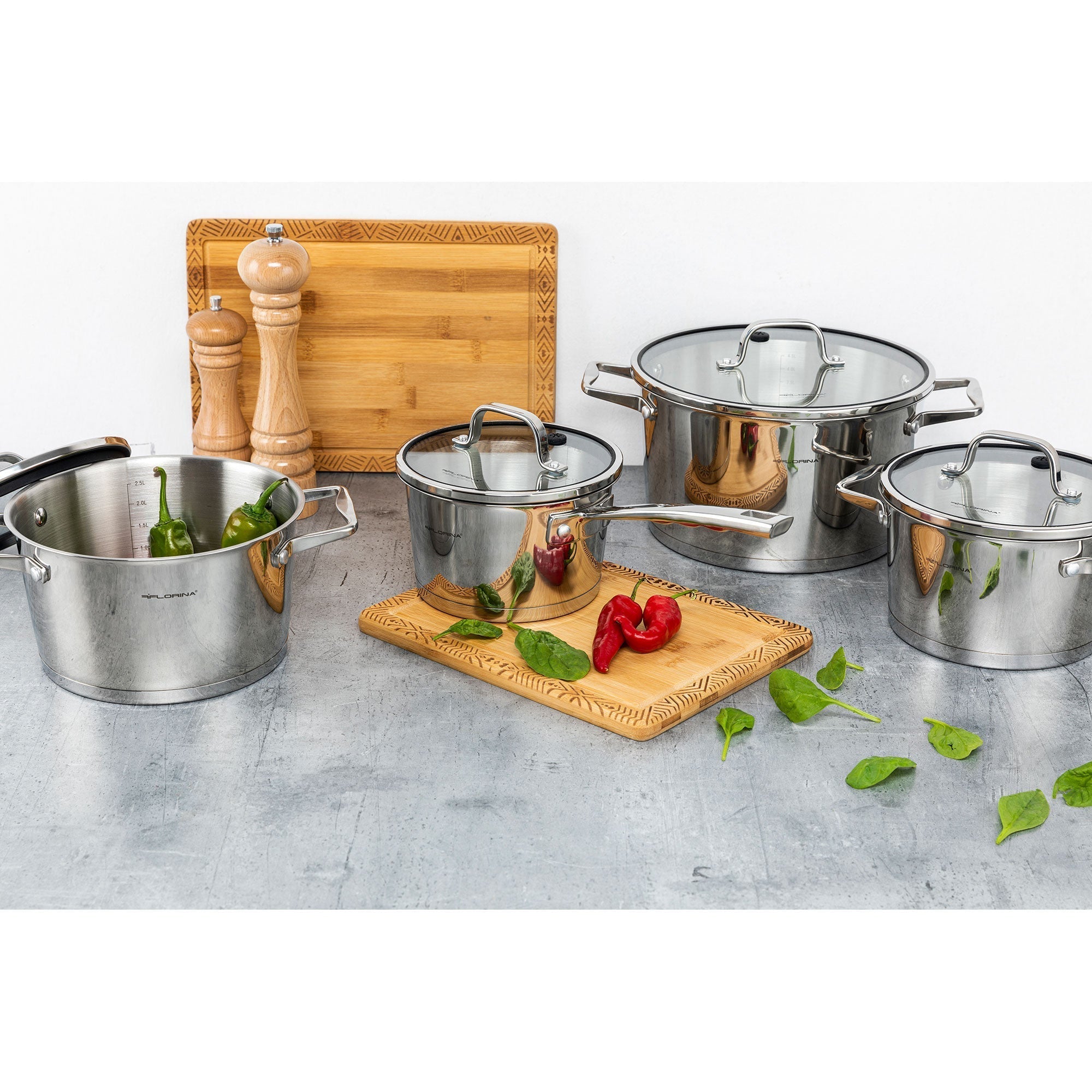 Toe aan een nieuwe pannenset? Met deze set van Florina Professional heb je in 1 keer alles in huis om lekker te koken op elke kookbron. De 8 delige set bestaat uit 4 kookpannen met deksel in verschillende afmetingen. Zo heb je altijd de juiste pan in huis voor het perfecte gerecht!