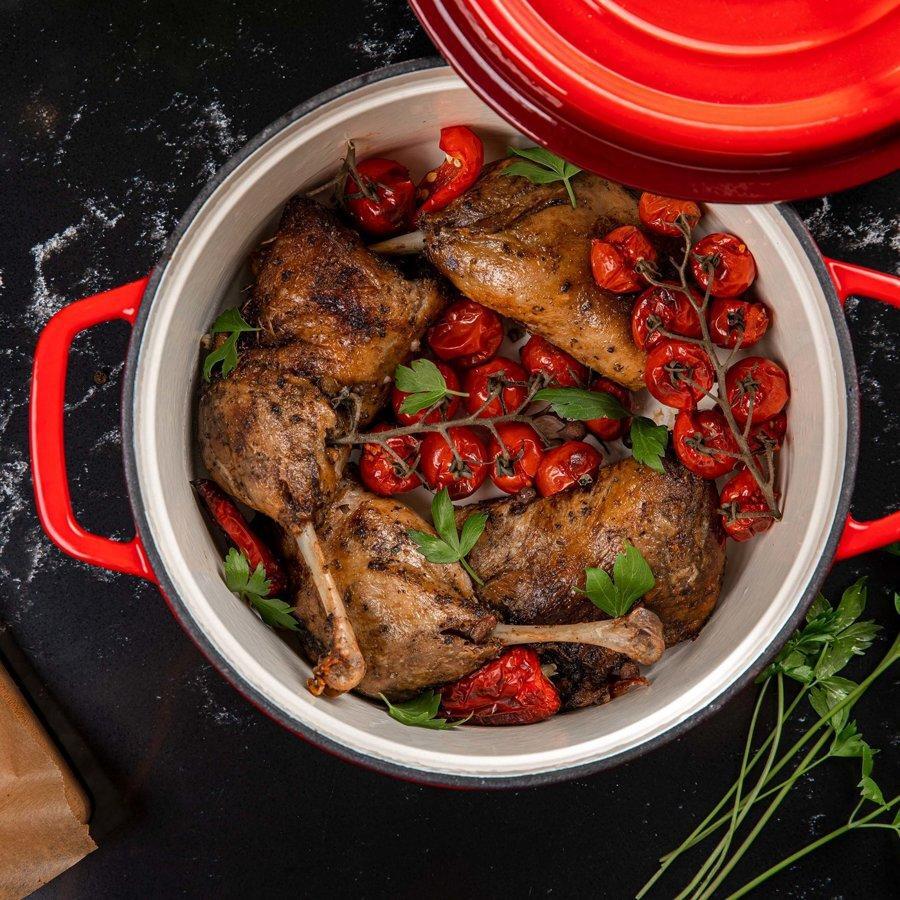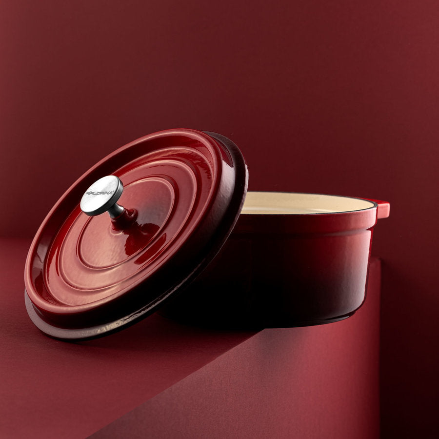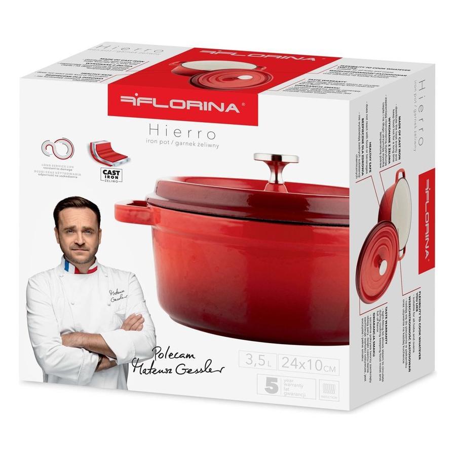 Waarom de braadpan van Florina? De Hierro braadpan is perfect voor elke keuken! Braad het vlees in de pan zo zacht als je wilt. Je kookt de soep aromatisch, zodat niemand om een tweede gang zal vragen. Je maakt jam voor de winter, bakt brood en zorgt tegelijkertijd voor je gezondheid. Met de gietijzer braadpan Hierro kunt u koken (op elk fornuis, inclusief inductie), frituren en bakken . Daarnaast door het prachtige design ziet de pan er erg indrukwekkend uit. De mooie diep rode pot kunt u direct op tafel serverenVoordelen