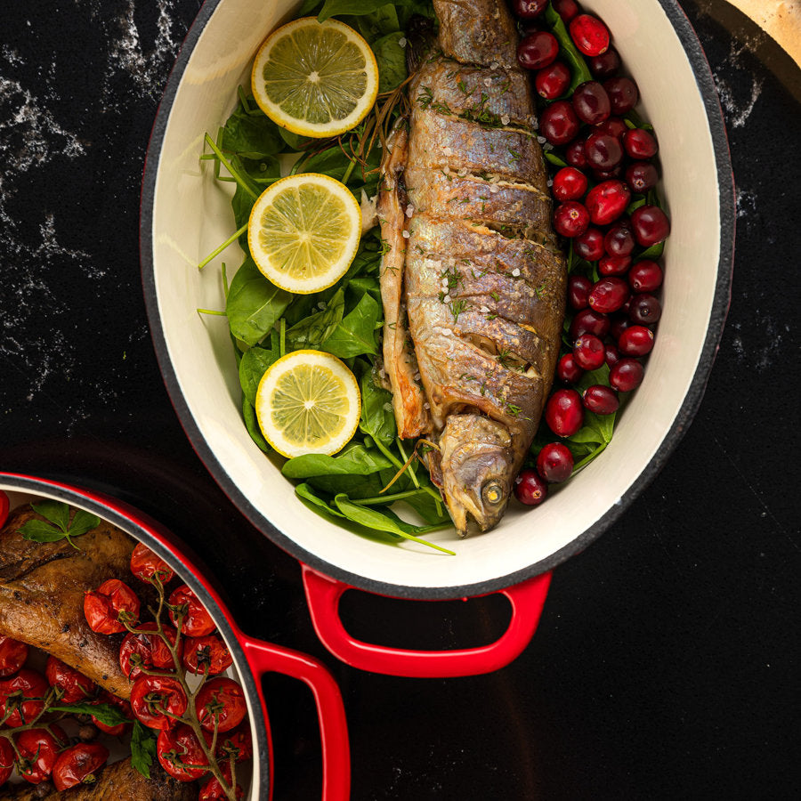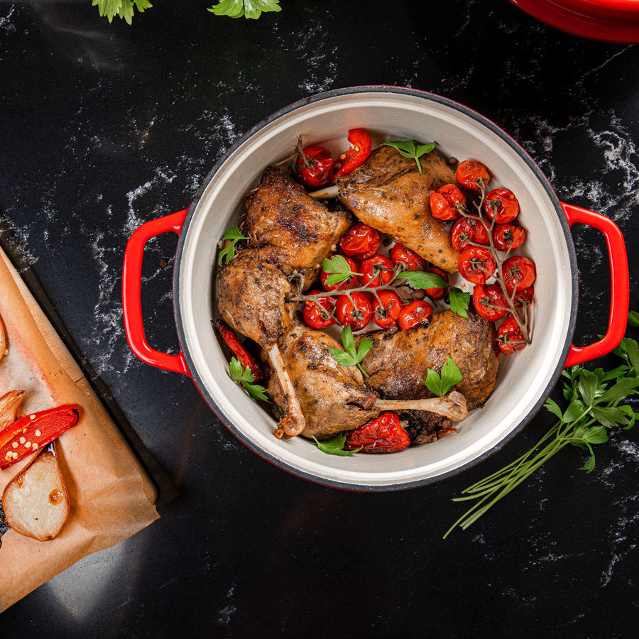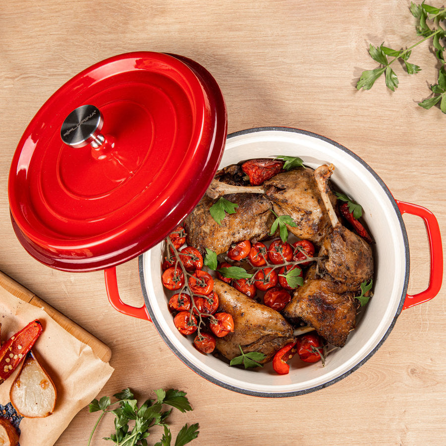 Doordat gietijzeren pannen langzaam warm worden, houden ze de warmte erg goed en lang vast. Ze zijn daarom perfect voor gerechten die langzaam moeten garen, zoals bijvoorbeeld een rundstoof. De stevige deksel past tot op de millimeter op de pan, wat zorgt voor een gesloten stoomcircuit . Hierdoor ontsnapt de stoom tijdens het koken niet en blijft het binnen. Hierdoor zijn de gerechten sappig, smaakvol en hemels aromatisch .