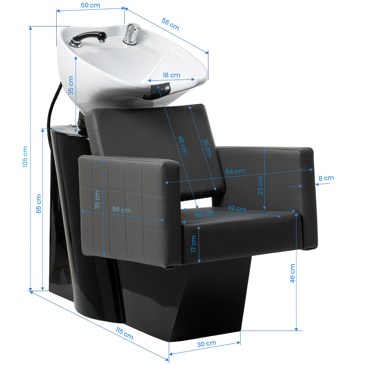 De ergonomisch gevormde zitting, het zachte siliconen hoofdsteunkussen en de kantelbare keramische kom zorgen voor optimaal comfort voor zowel klant als stylist. Dankzij de stevige constructie en hoogwaardige materialen is deze wasunit ideaal voor intensief dagelijks gebruik.