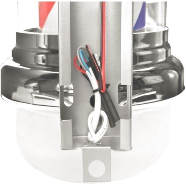 De klassieke barber-pole-rotatie in rood-wit-blauw trekt direct aandacht en versterkt de professionele uitstraling van je salon.