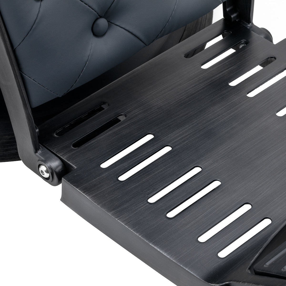 De Gabbiano Francesco Barber Chair Grafiet met Geborsteld Zwart Frame is ontworpen voor barbers die luxe uitstraling, superieur comfort en professionele functionaliteit willen combineren. De brede zitting van 60 cm, de ergonomische rugleuning van 47 cm, de verstelbare hoofdsteun van 23 × 30 cm en de royale voetsteun zorgen voor maximale ontspanning tijdens elke behandeling. Dankzij het stijlvolle grafiet eco-leder en het duurzame geborsteld zwarte frame krijgt jouw barbershop een krachtige, moderne uitstraling.
