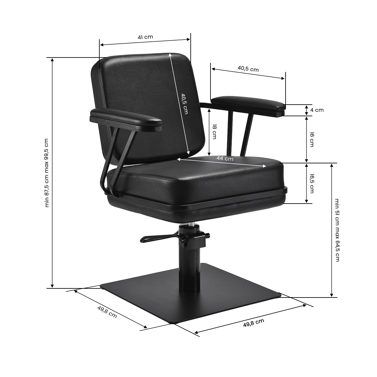 • Hoogteverstelling: Hydraulisch, 51–64,5 cm