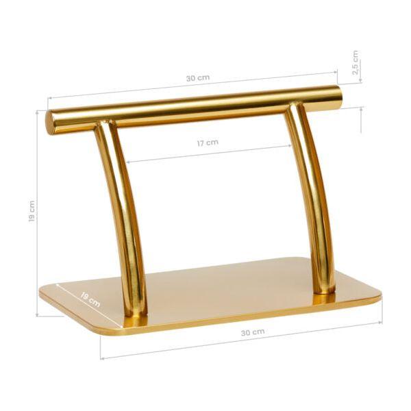 De voetsteun is vervaardigd uit hoogwaardige materialen in een schitterende gouden kleur. Dit zorgt niet alleen voor functionaliteit, maar voegt ook een vleugje elegantie toe aan de salon.